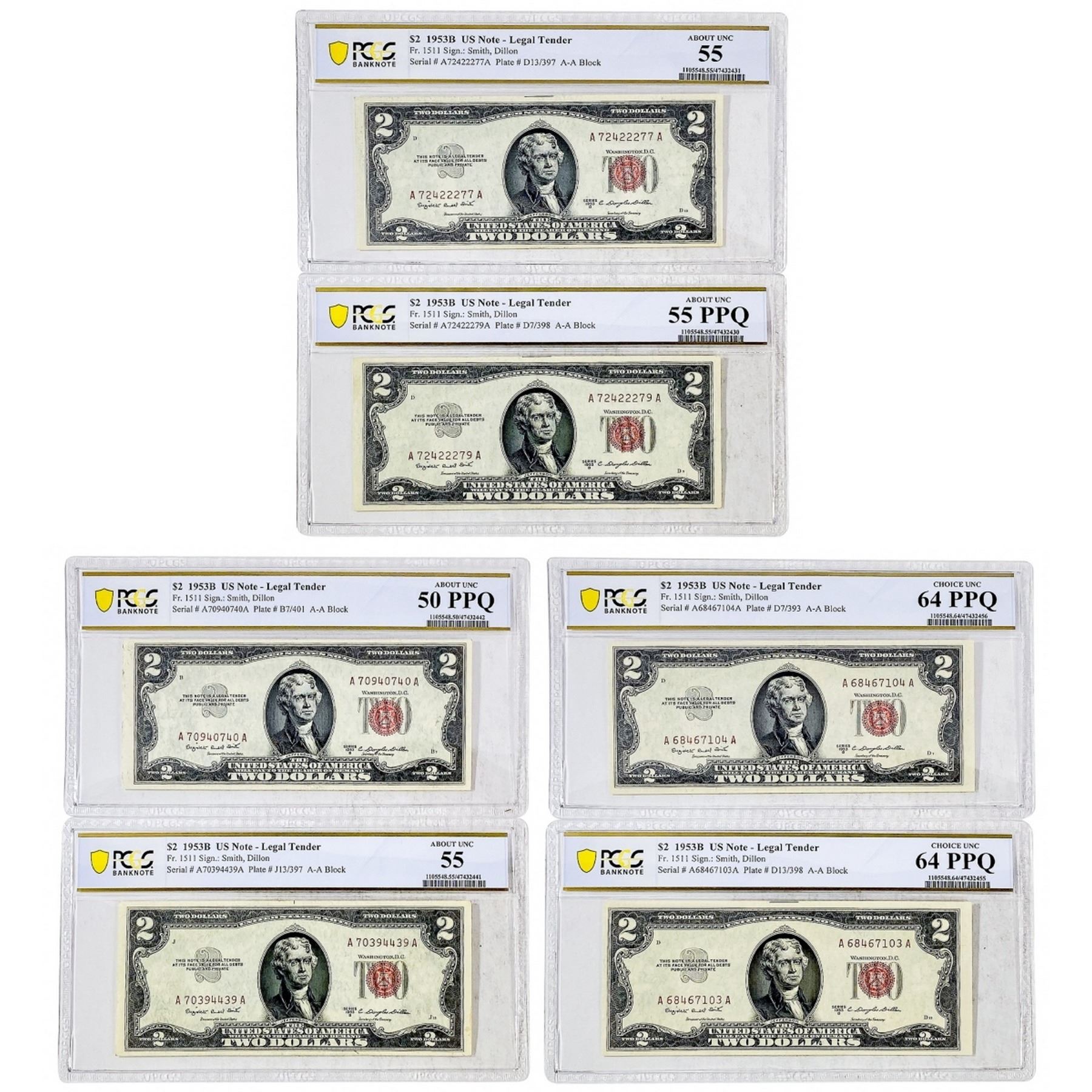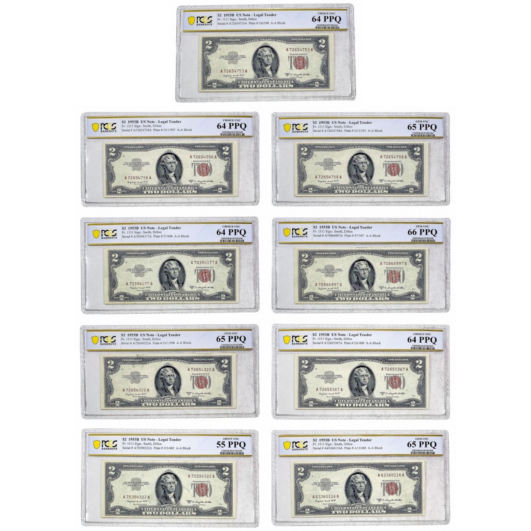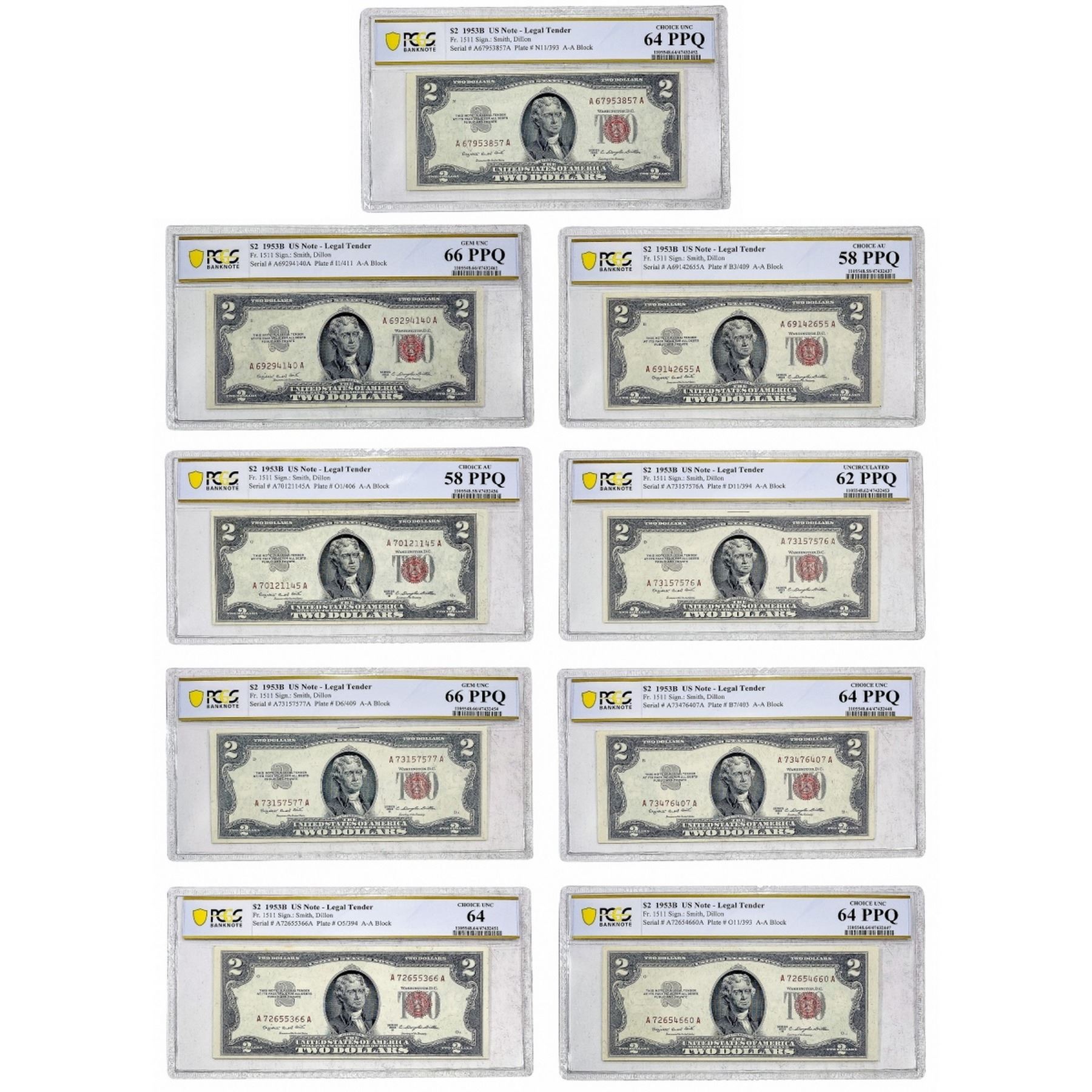 1953B M US $2 Legal Tender Notes [42 Notes] PCGS AU55-MS66