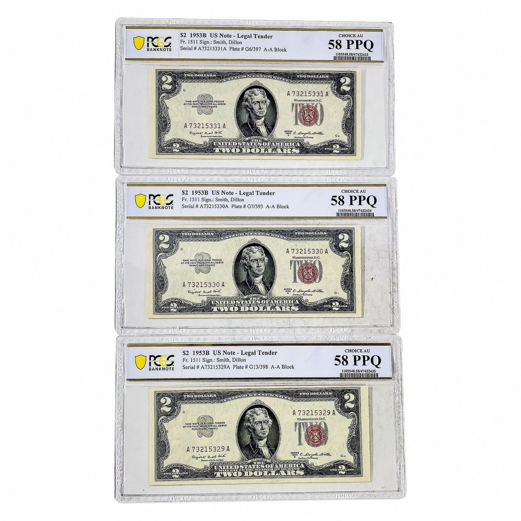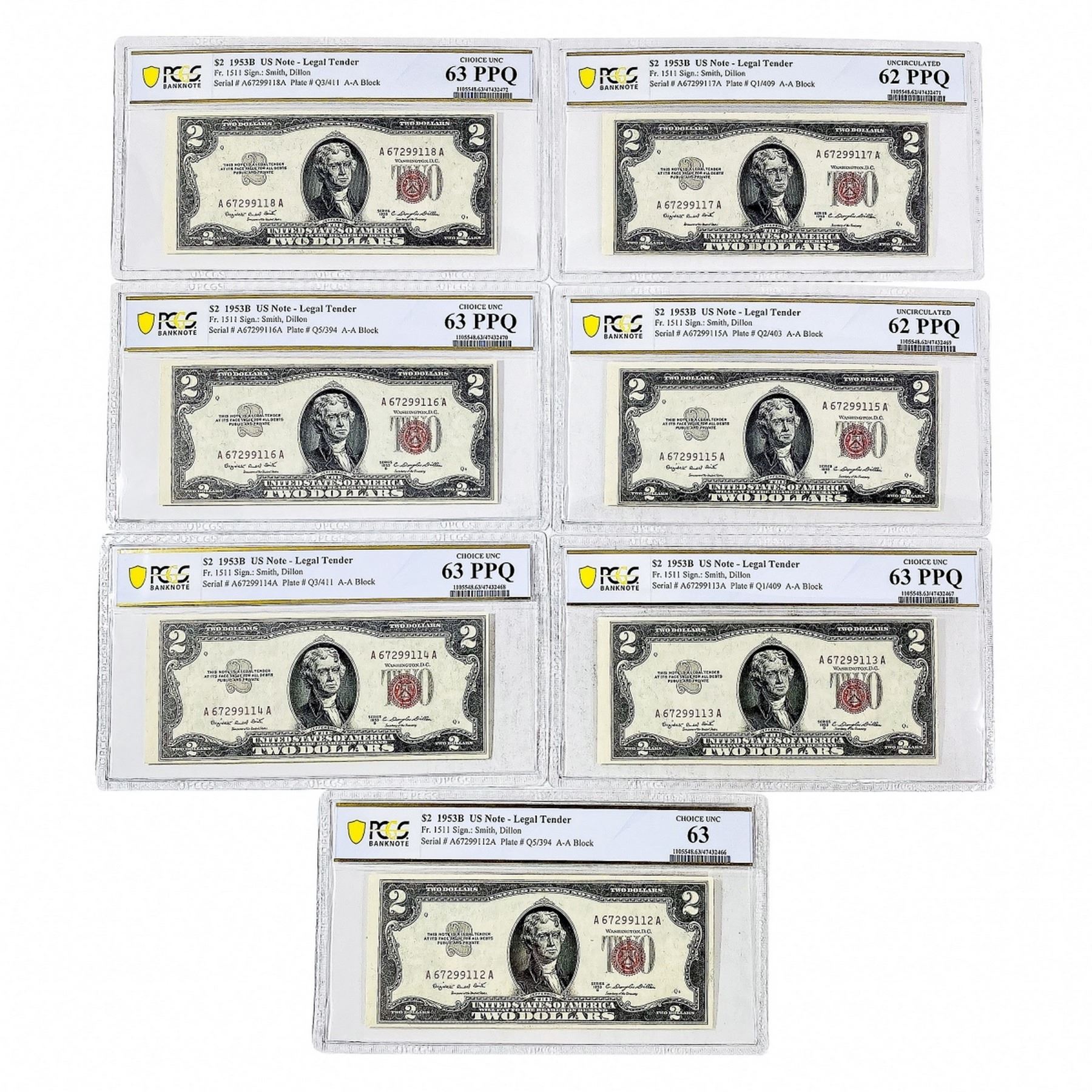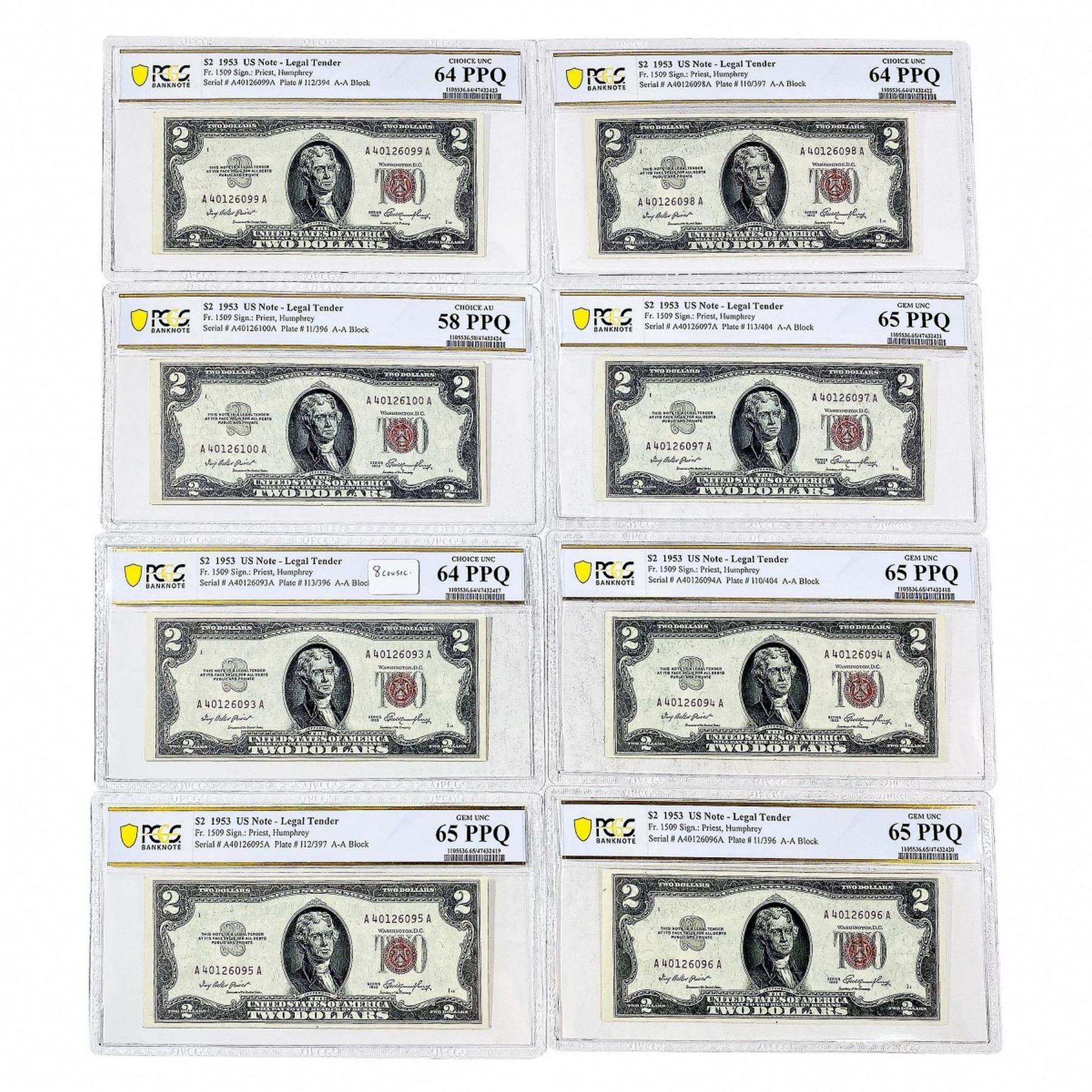 1953B M US $2 Legal Tender Notes [42 Notes] PCGS AU55-MS66