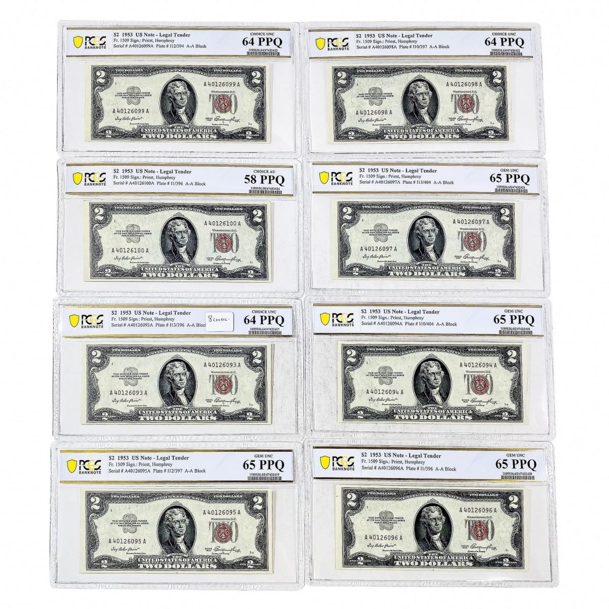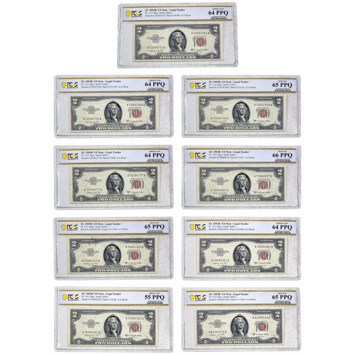 1953B M US $2 Legal Tender Notes [42 Notes] PCGS AU55-MS66