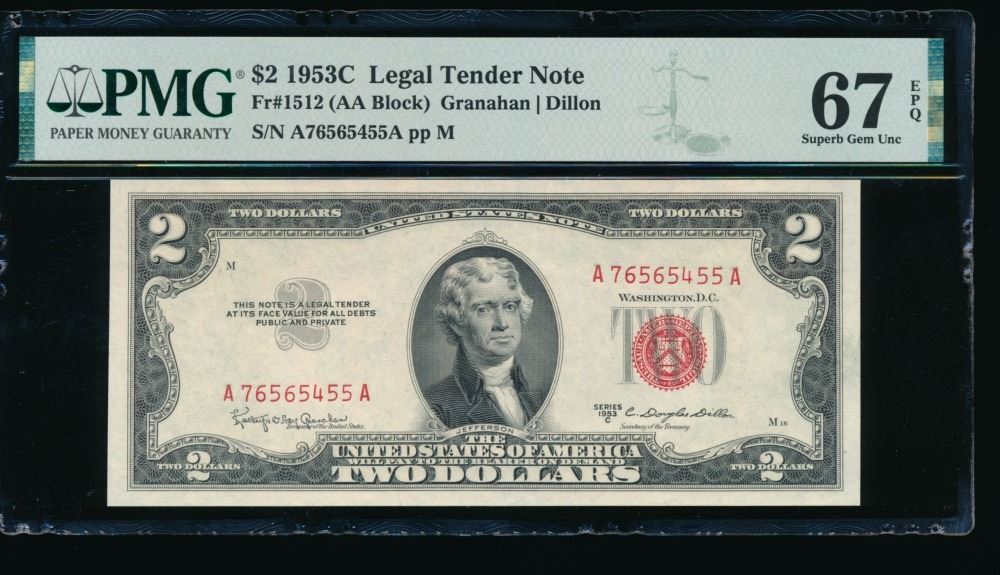 One 1953C $2 Legal Tender Note PMG 67EPQ.