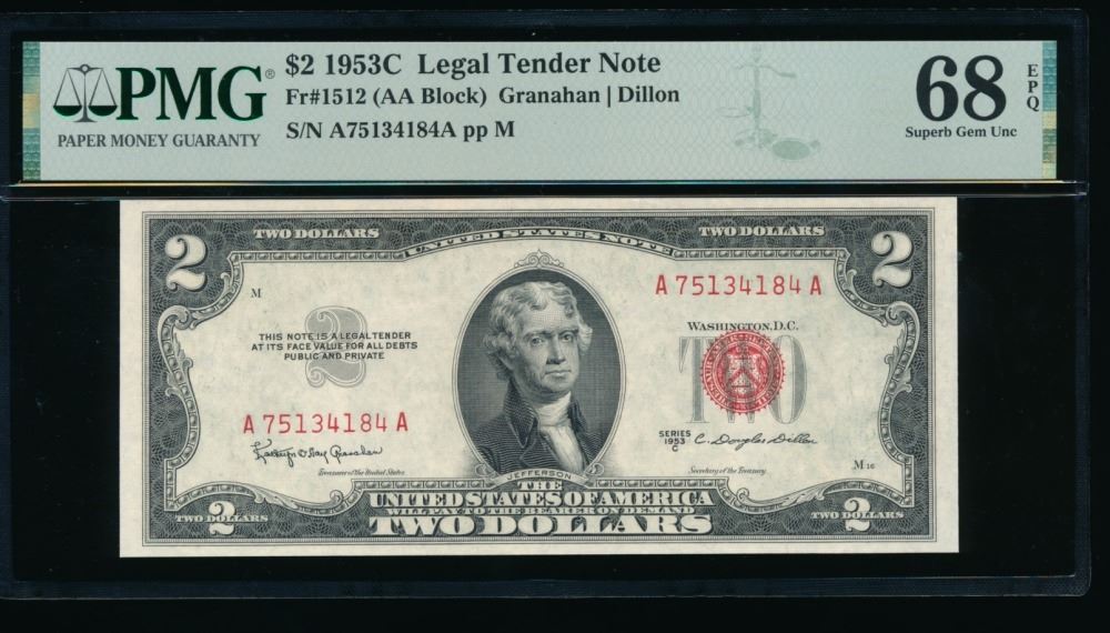 One 1953C $2 Legal Tender Note PMG 68EPQ.
