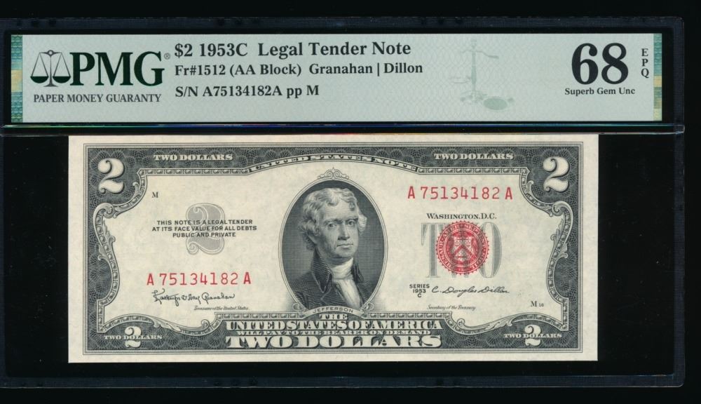 One 1953C $2 Legal Tender Note PMG 68EPQ.