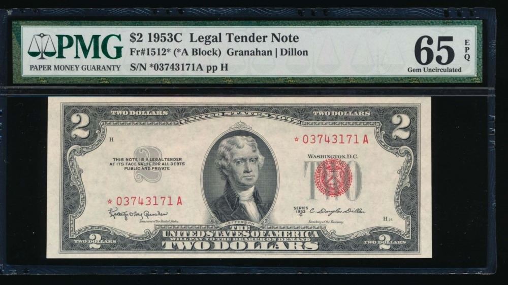 One 1953C $2 Legal Tender STAR Note PMG 65EPQ.