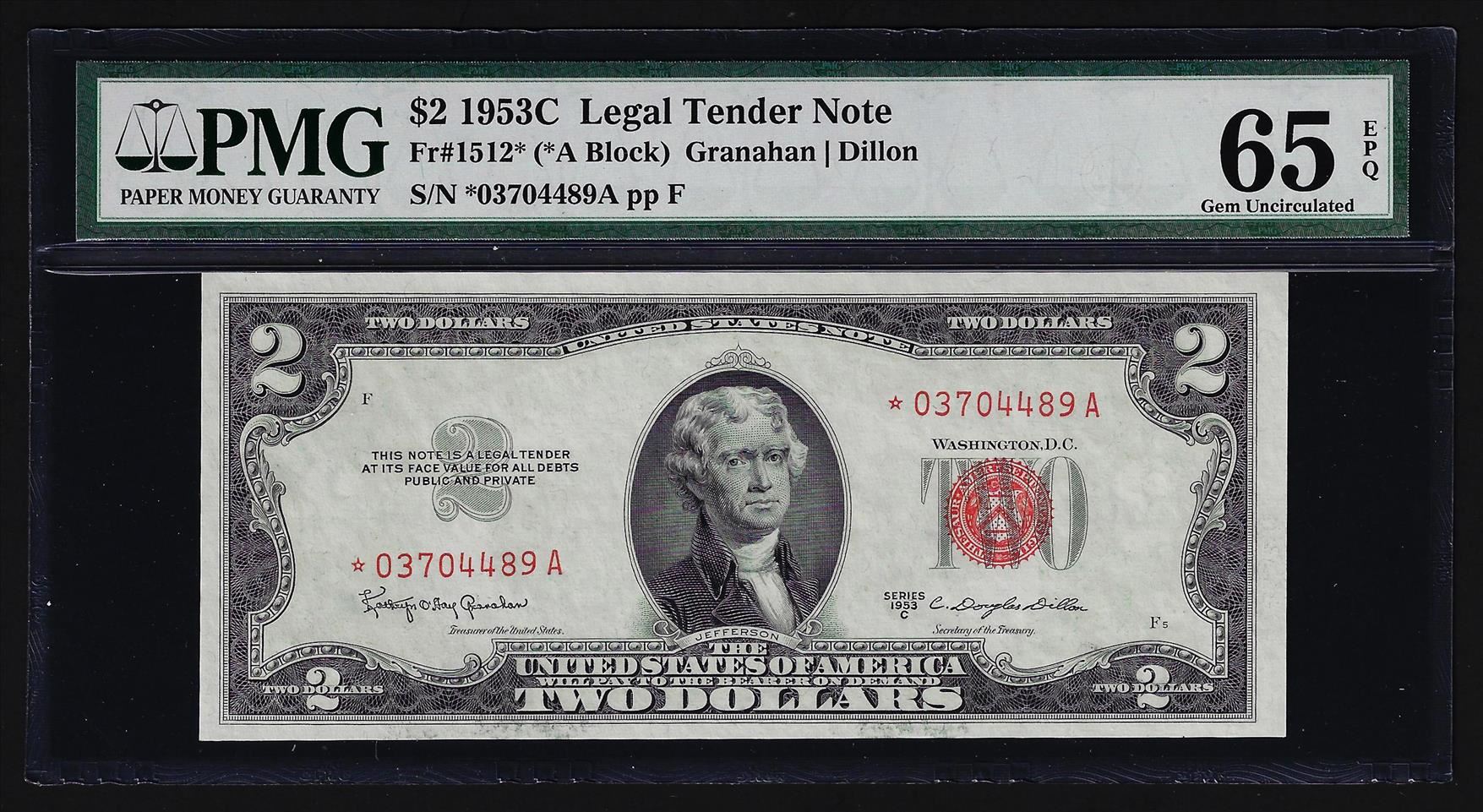 One 1953C $2 Legal Tender STAR Note PMG Gem Uncirculated 65EPQ. PMG Certified.