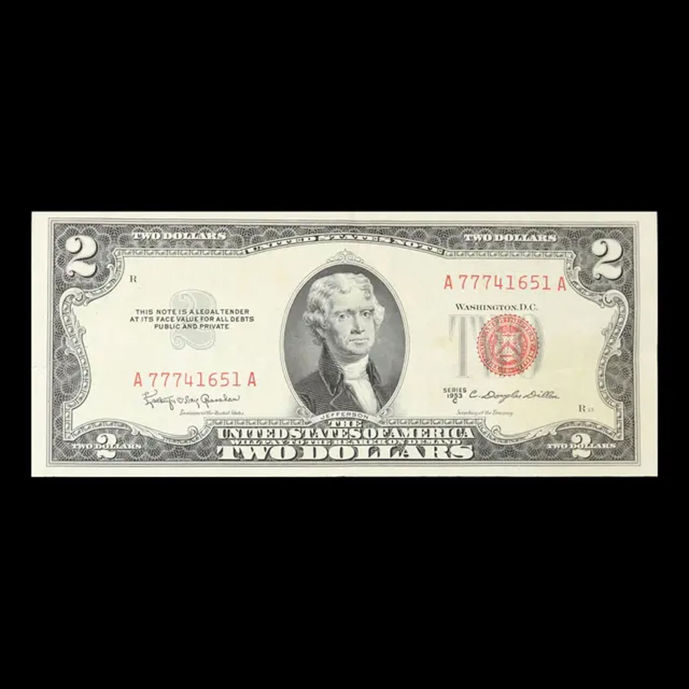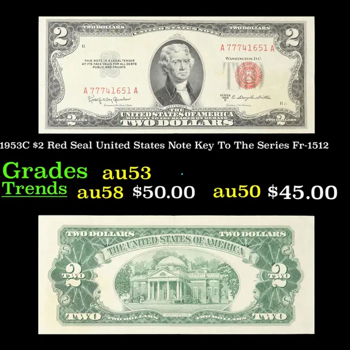 1953C $2 Red Seal United States Note Key To The Series Fr-1512 Grades Select AU. Out of about 70 Million 1953 $2 Notes Printed Only About 7% were 1953C Notes Making it the lowest mintage in the series and The Key To The Series