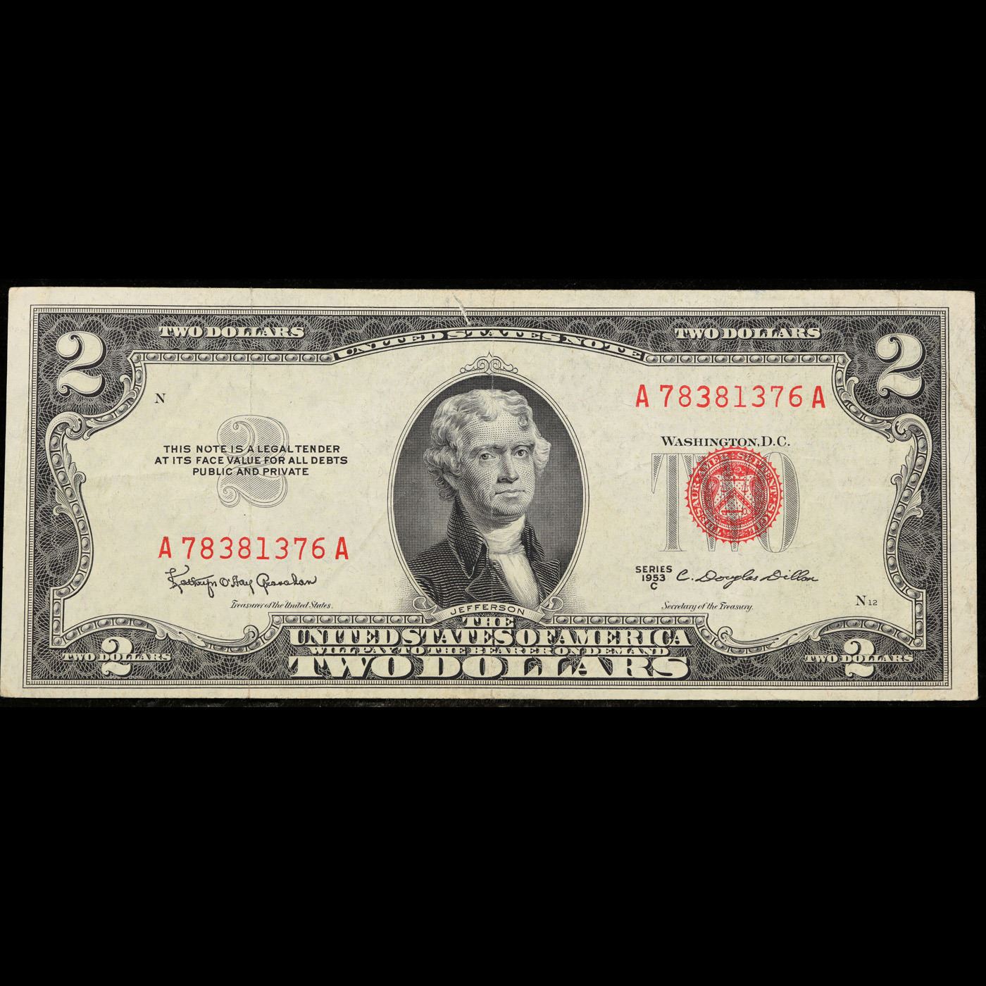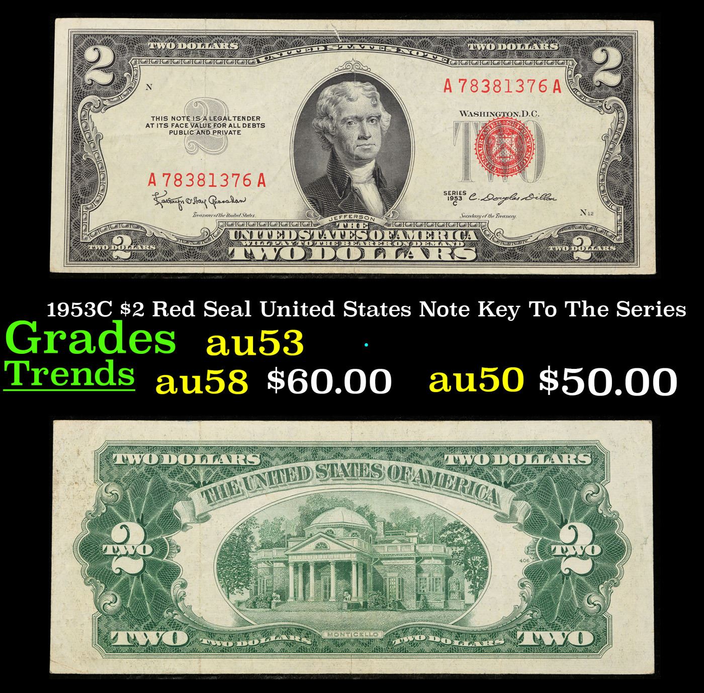 1953C $2 Red Seal United States Note Key To The Series Grades Select AU. Out of about 70 Million 1953 $2 Notes Printed Only About 7% were 1953c Notes Making it the lowest mintage in the series and The Key To The Series
