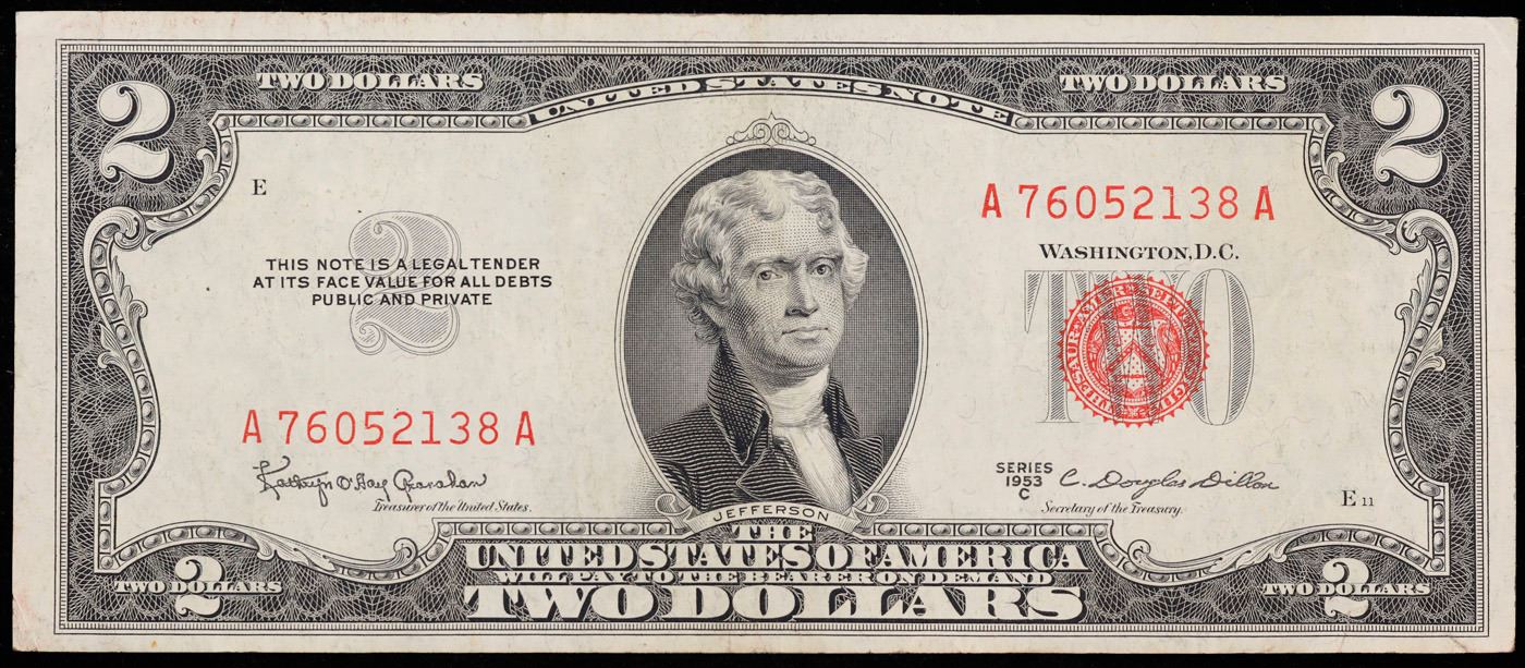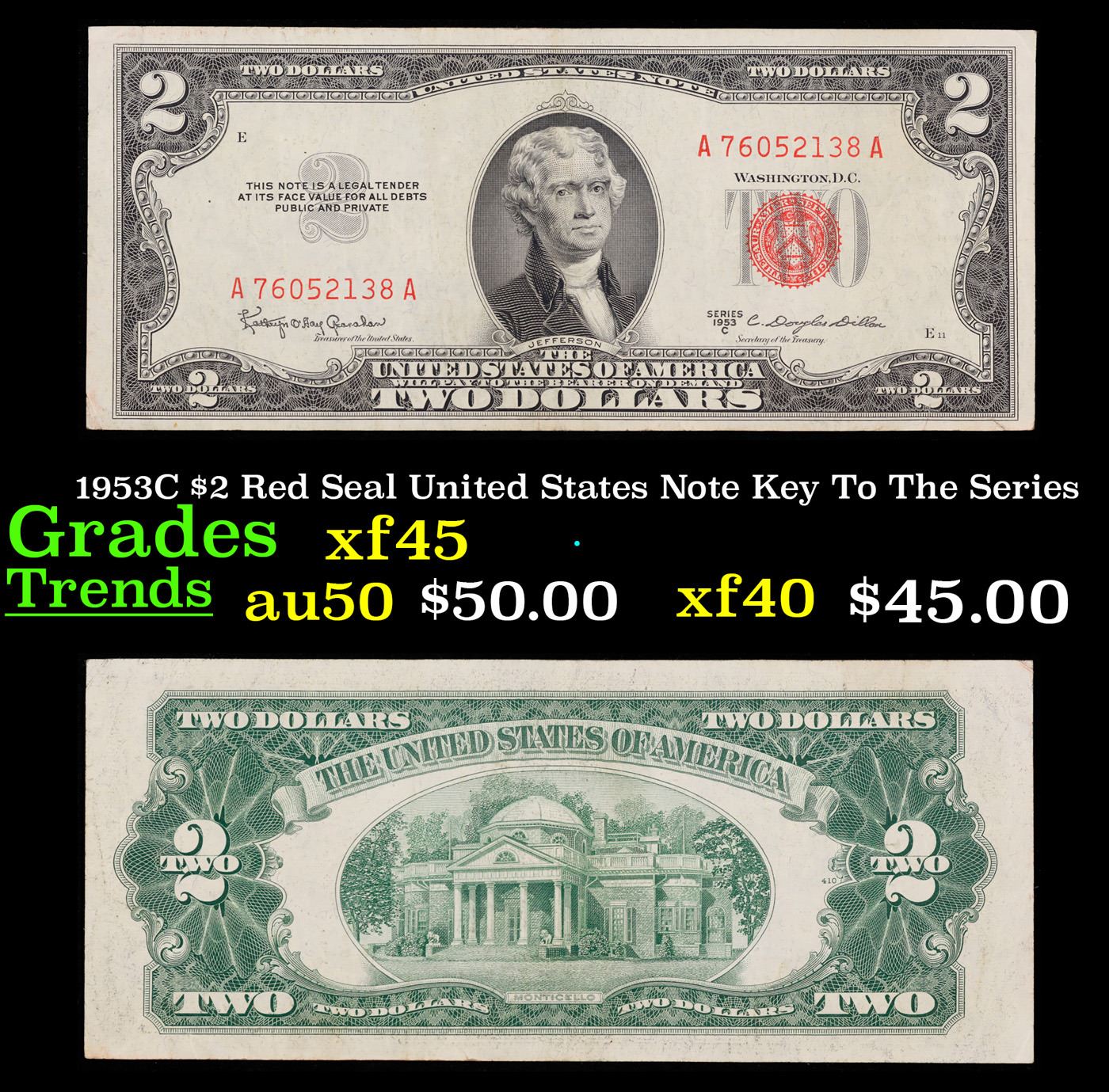 1953C $2 Red Seal United States Note Key To The Series Grades xf+. Out of about 70 Million 1953 $2 Notes Printed Only About 7% were 1953c Notes Making it the lowest mintage in the series and The Key To The Series