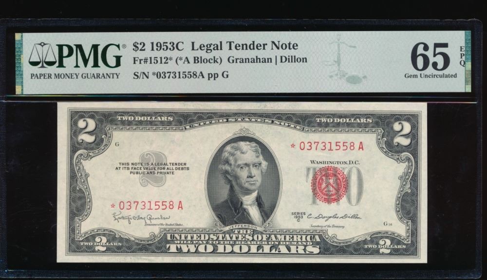 One 1953C $2 STAR Legal Tender Note PMG 65EPQ.