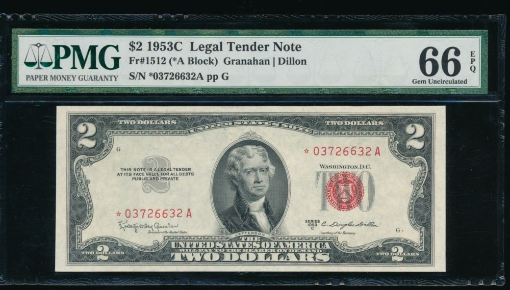 One 1953C $2 STAR Legal Tender Note PMG 66EPQ.