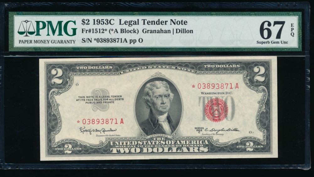 One 1953C $2 STAR Legal Tender Note PMG 67EPQ.