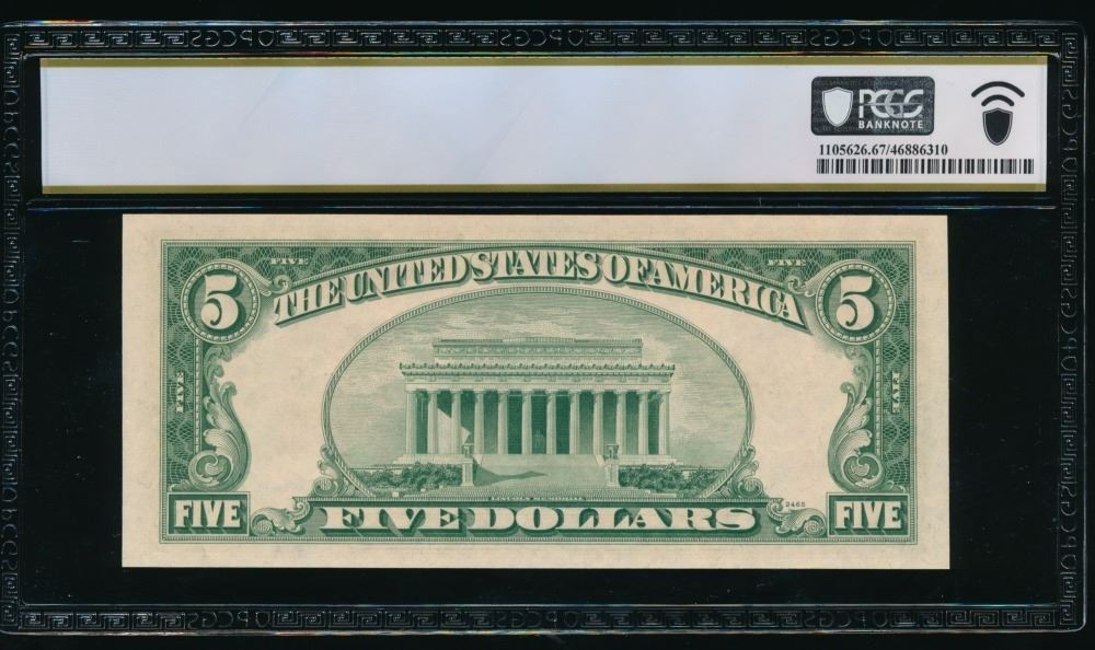 One 1953C $5 Legal Tender Note PCGS 67PPQ.