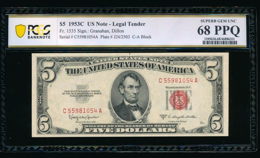 One 1953C $5 Legal Tender Note PCGS 68PPQ.