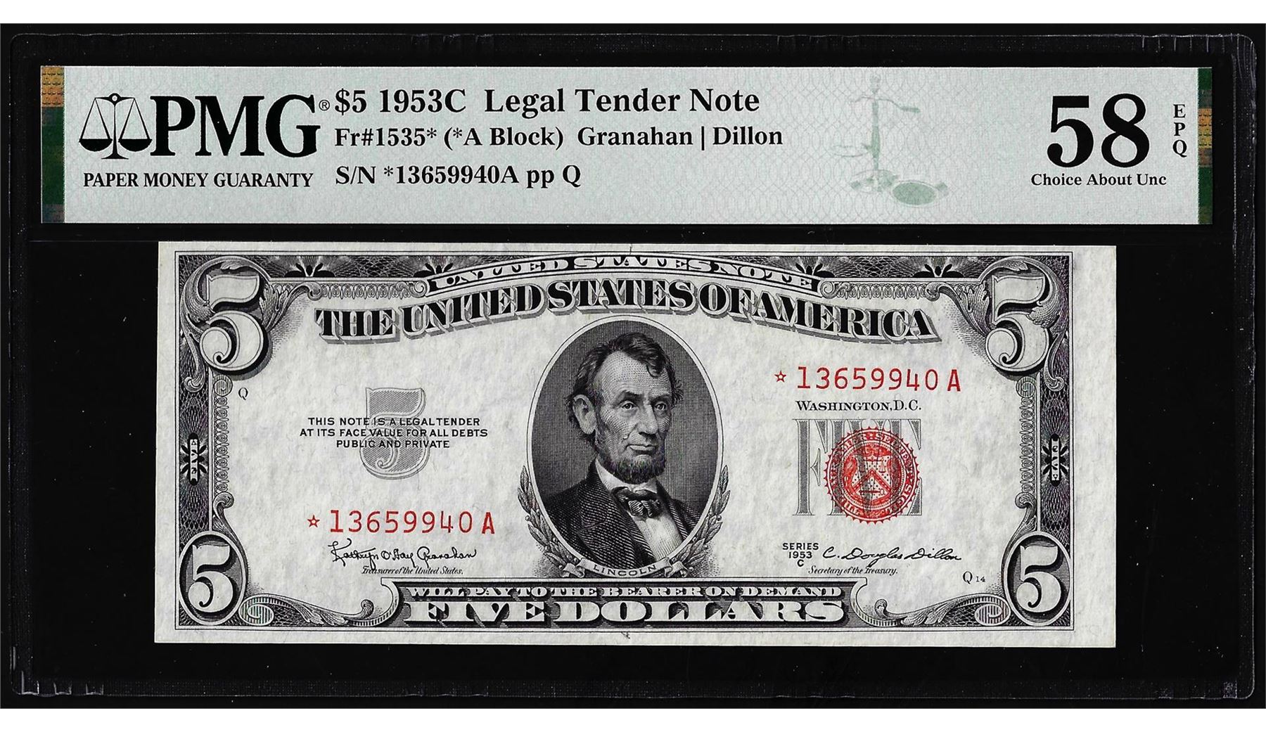 1953C $5 Legal Tender STAR Note Fr.1535* PMG Choice About Uncirculated 58EPQ