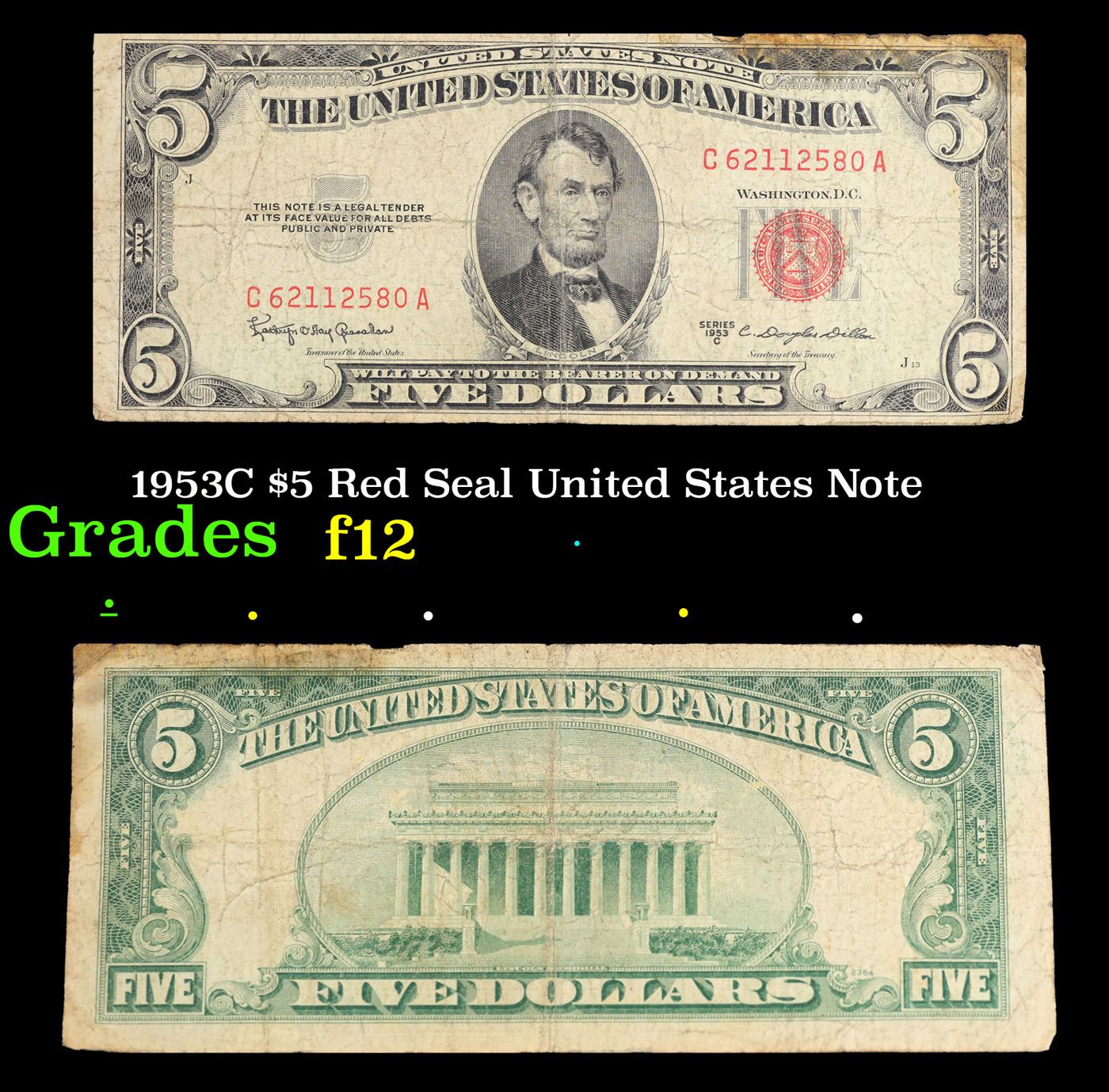 1953C $5 Red Seal Fancy Serial United States Note Grades f, fine