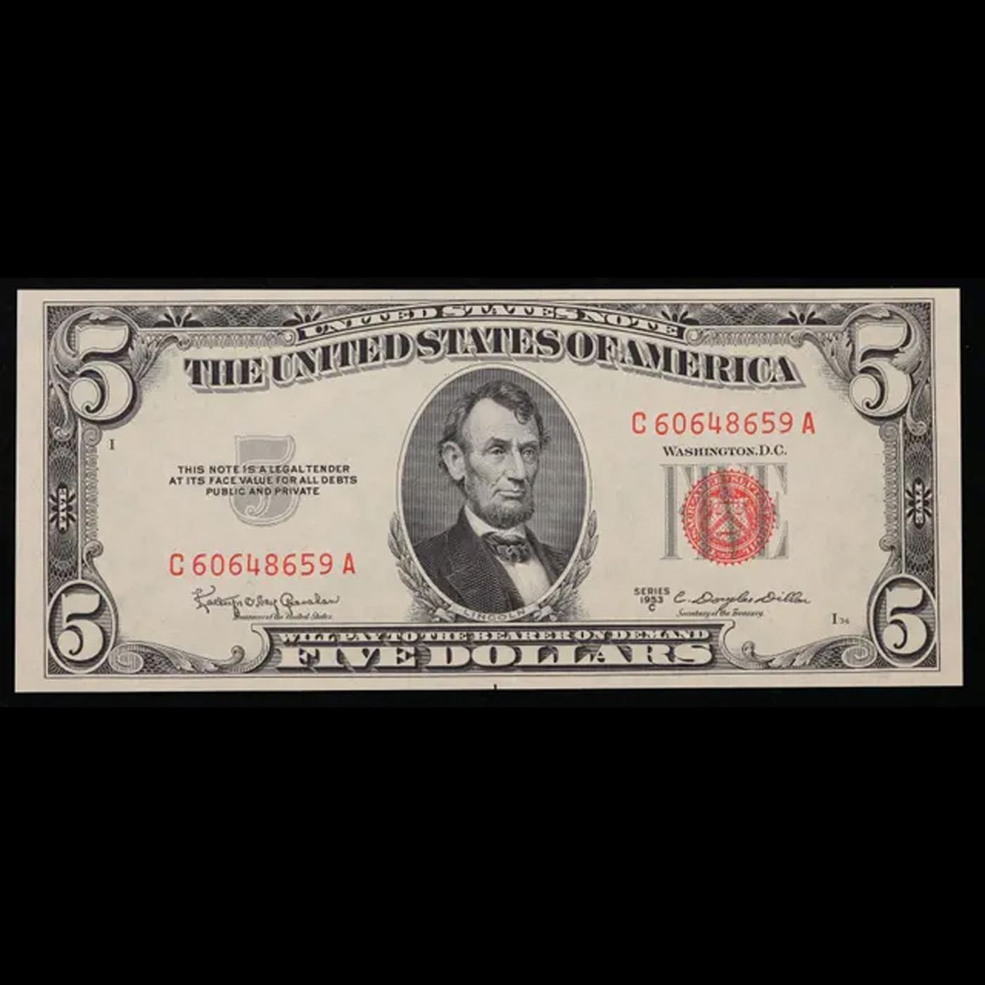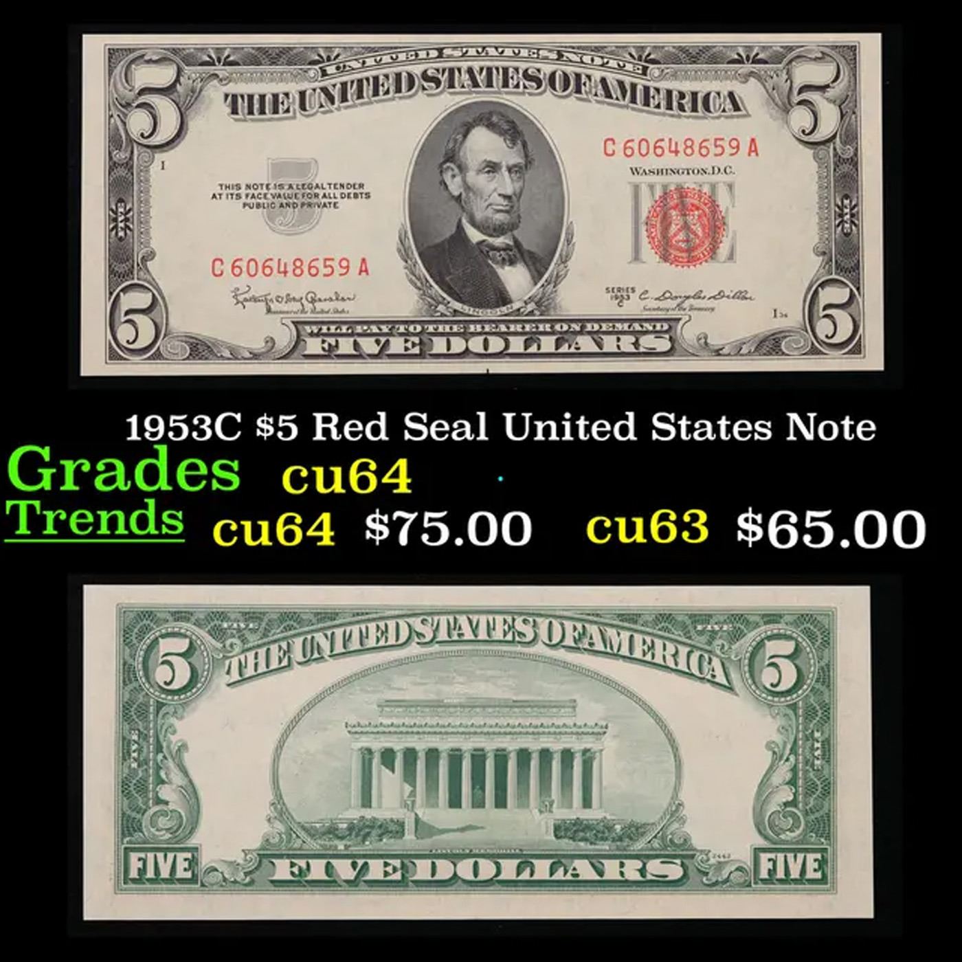 1953C $5 Red Seal United States Note Grades Choice CU.