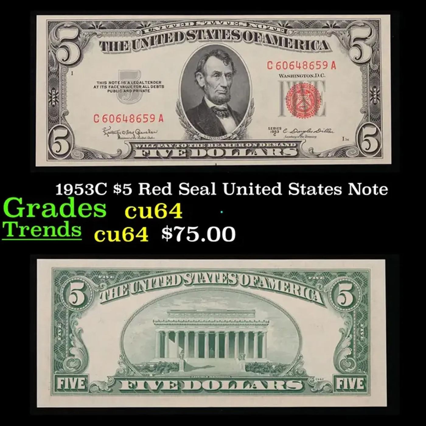1953C $5 Red Seal United States Note Grades Choice CU.