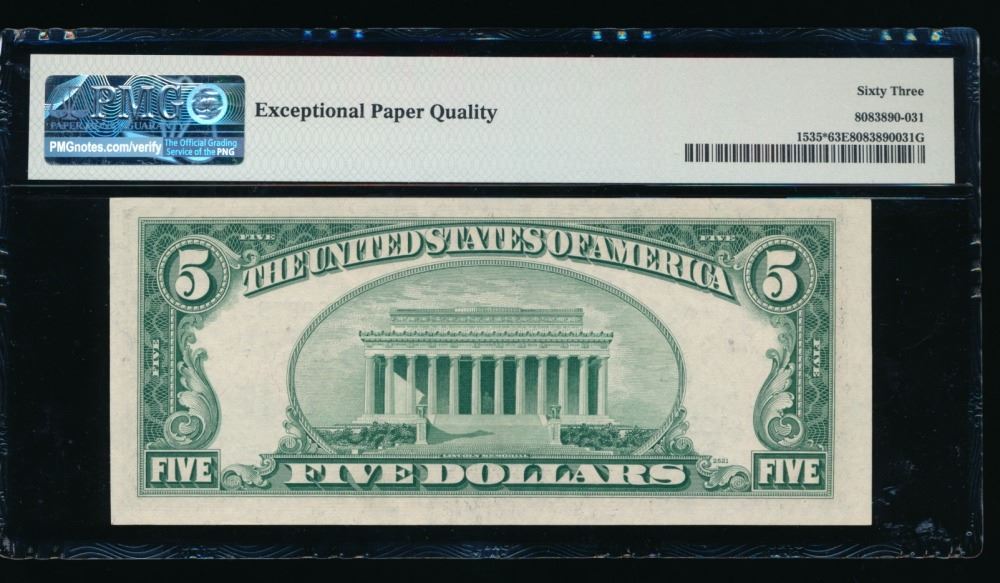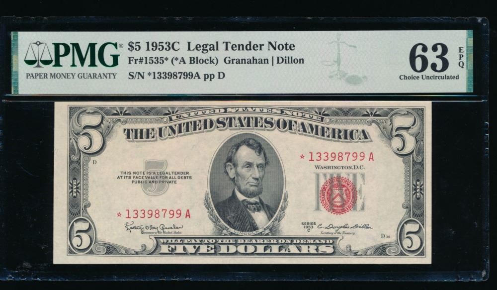 One 1953C $5 STAR Legal Tender Note PMG 63EPQ.
