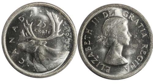 1953SD Canada Twenty-Five Cents-ICCS MS63Cam