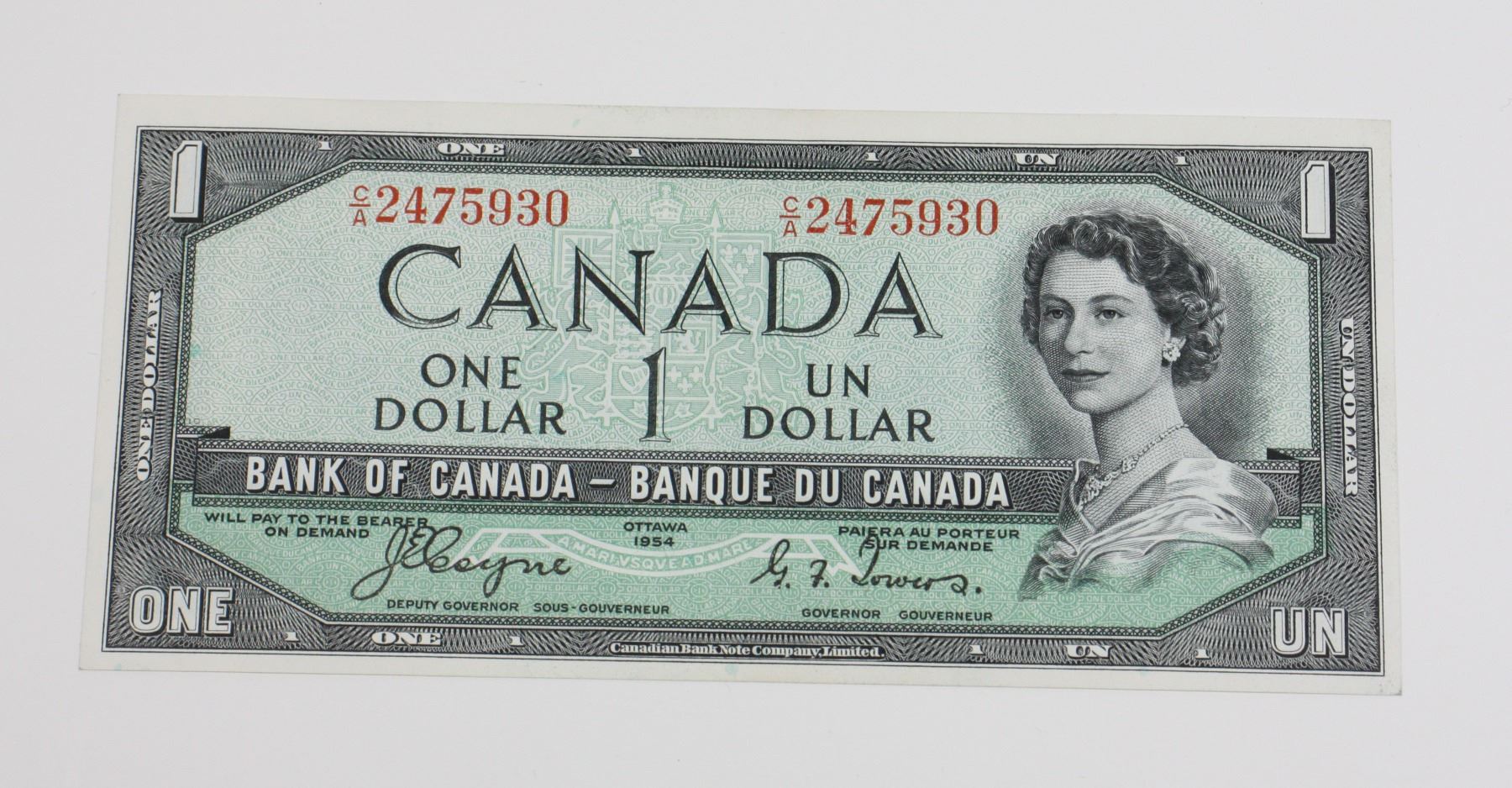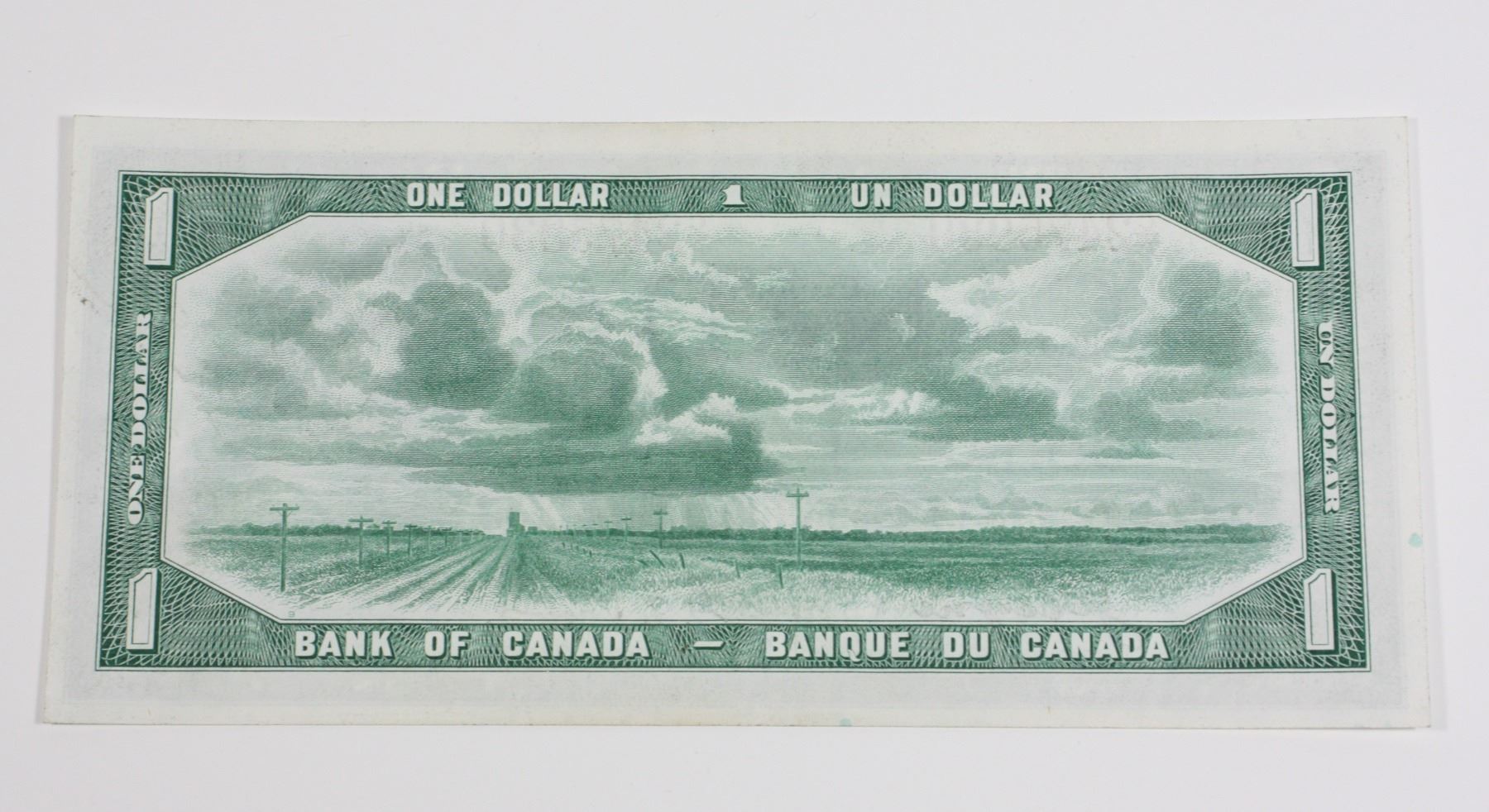BEAUTIFUL BRILLIANT COLORS CRISP BILL MS-65. 1954 $1.00 DEVILS FACE look closely at the colors the framing and edges of this bill, it is a piece of ART a highly desirable bill very valuable