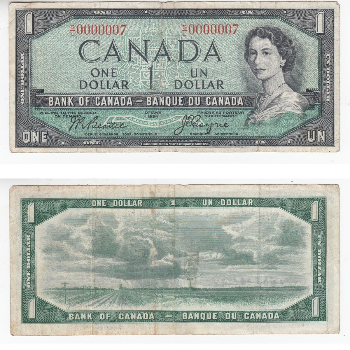 1954 $1.00 Note with Low Serial Number S/L0000007