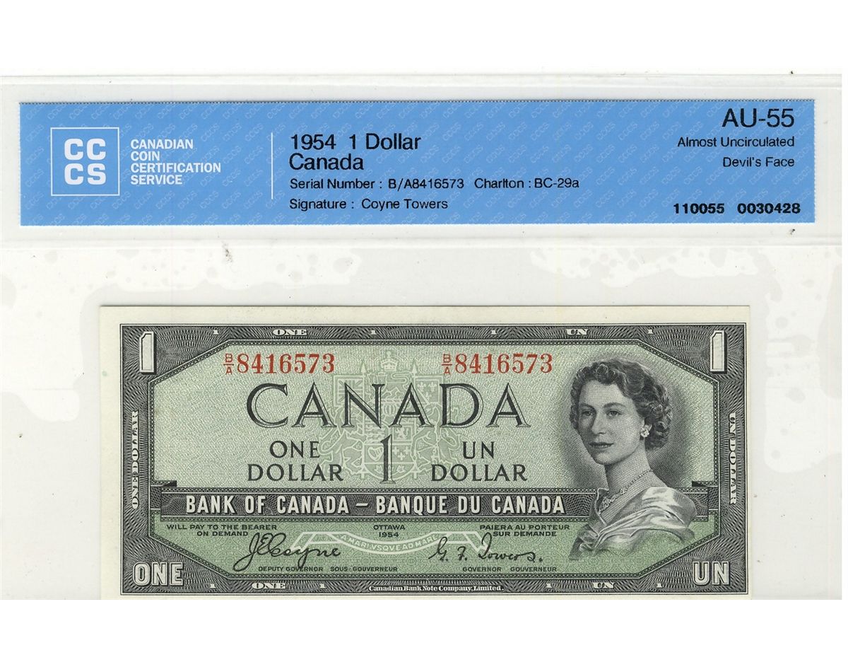 1954 $1 BC-29a #841573 CCCS AU55. Sharp and clean.