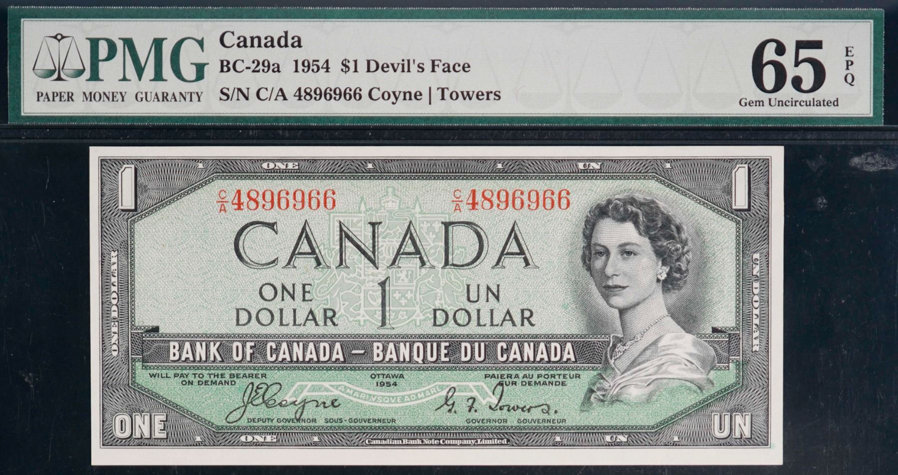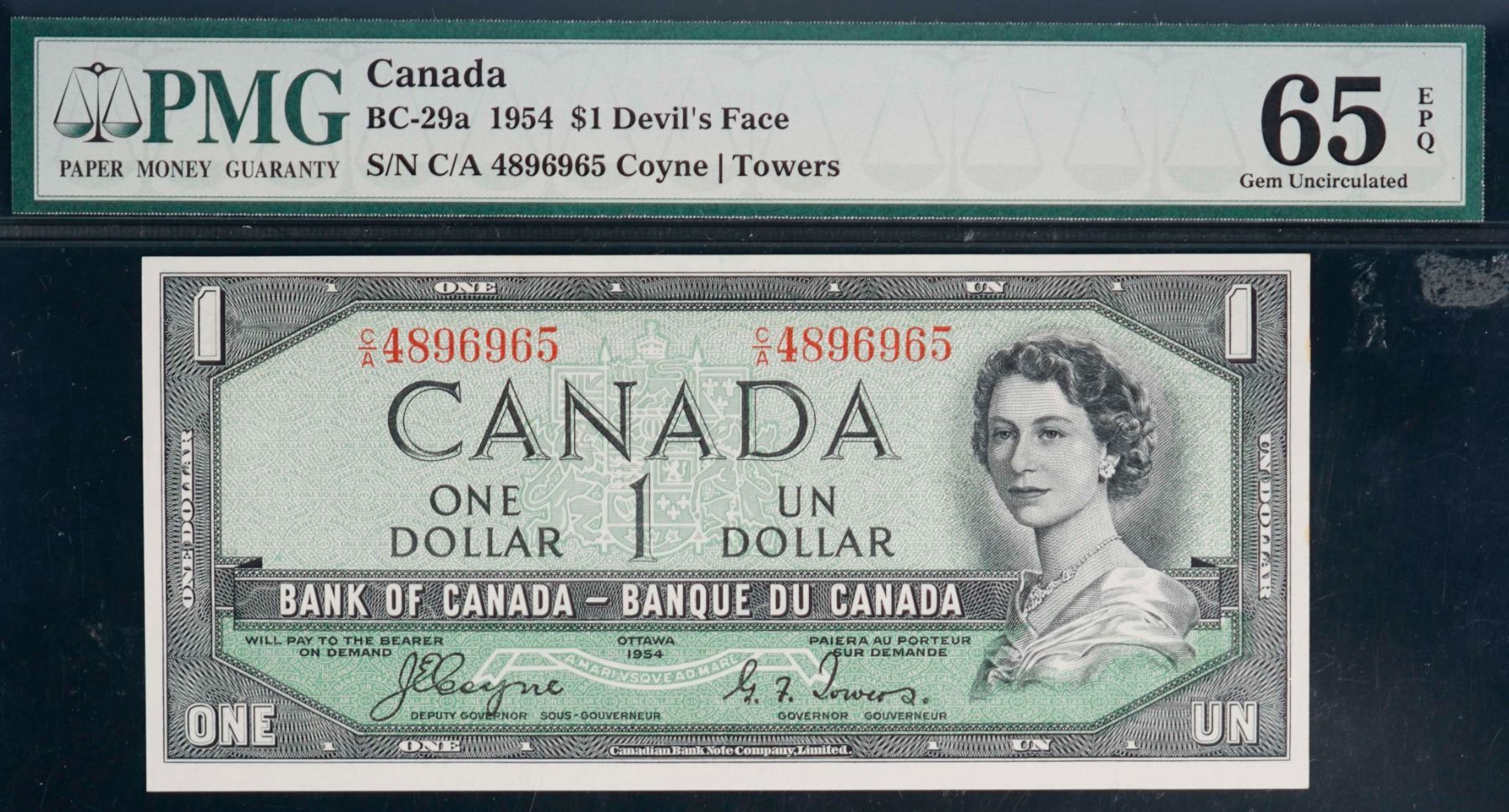 1954 $1 BC-29a #CA4896965-66, PMG Gem Uncirculated-65EPQ. Lot of 2 consecutive notes.