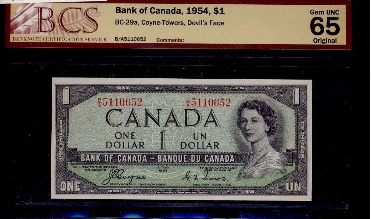 1954 $1 BC-29a Devils Coyne-Towers #BA5110652 BCS Gem UNC-65