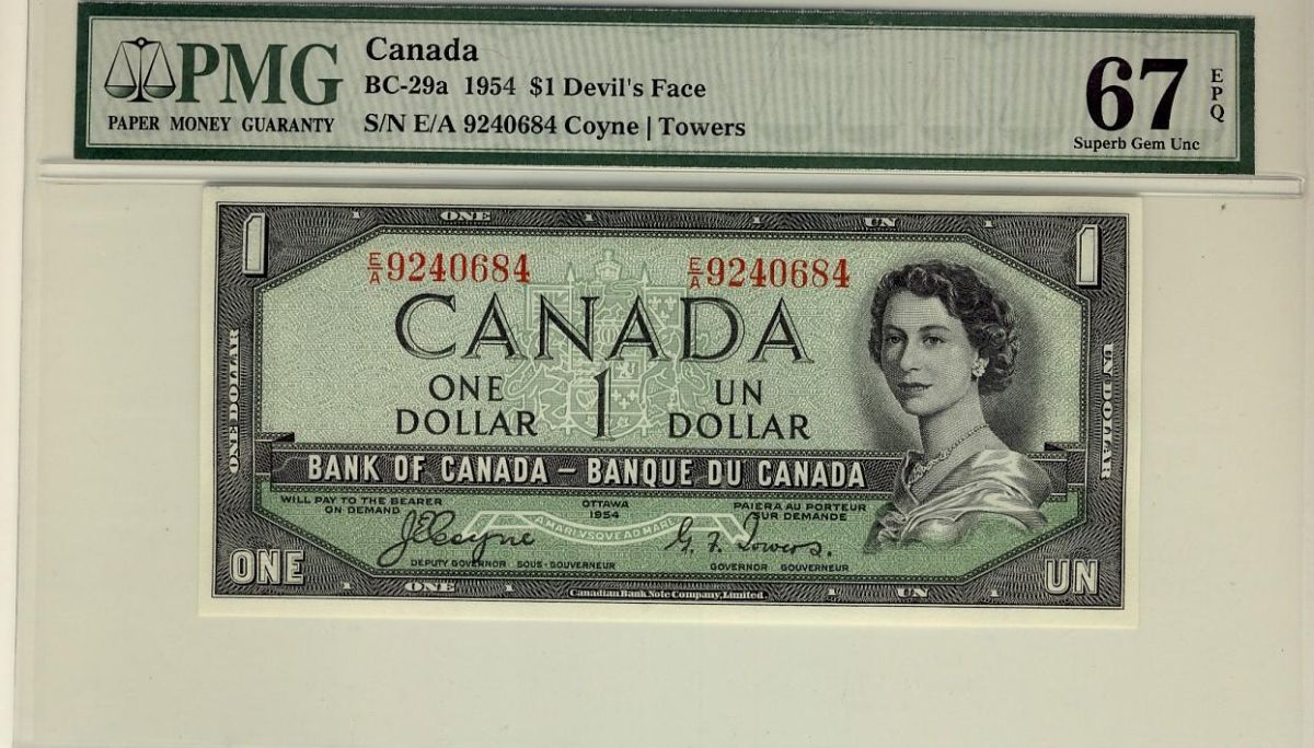 1954 $1 BC-29a #EA9240684 PMG Gem UNC67 EPQ. A nice and super Gem!