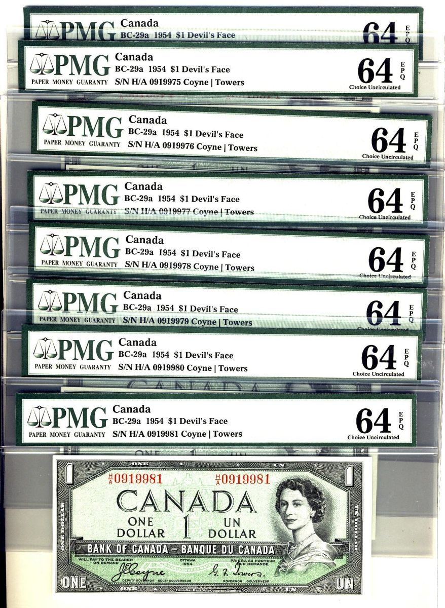 1954 $1 BC-29a PMG CH UNC64 EPQ. Lot of 8 consecutive notes #HA0919974-981,