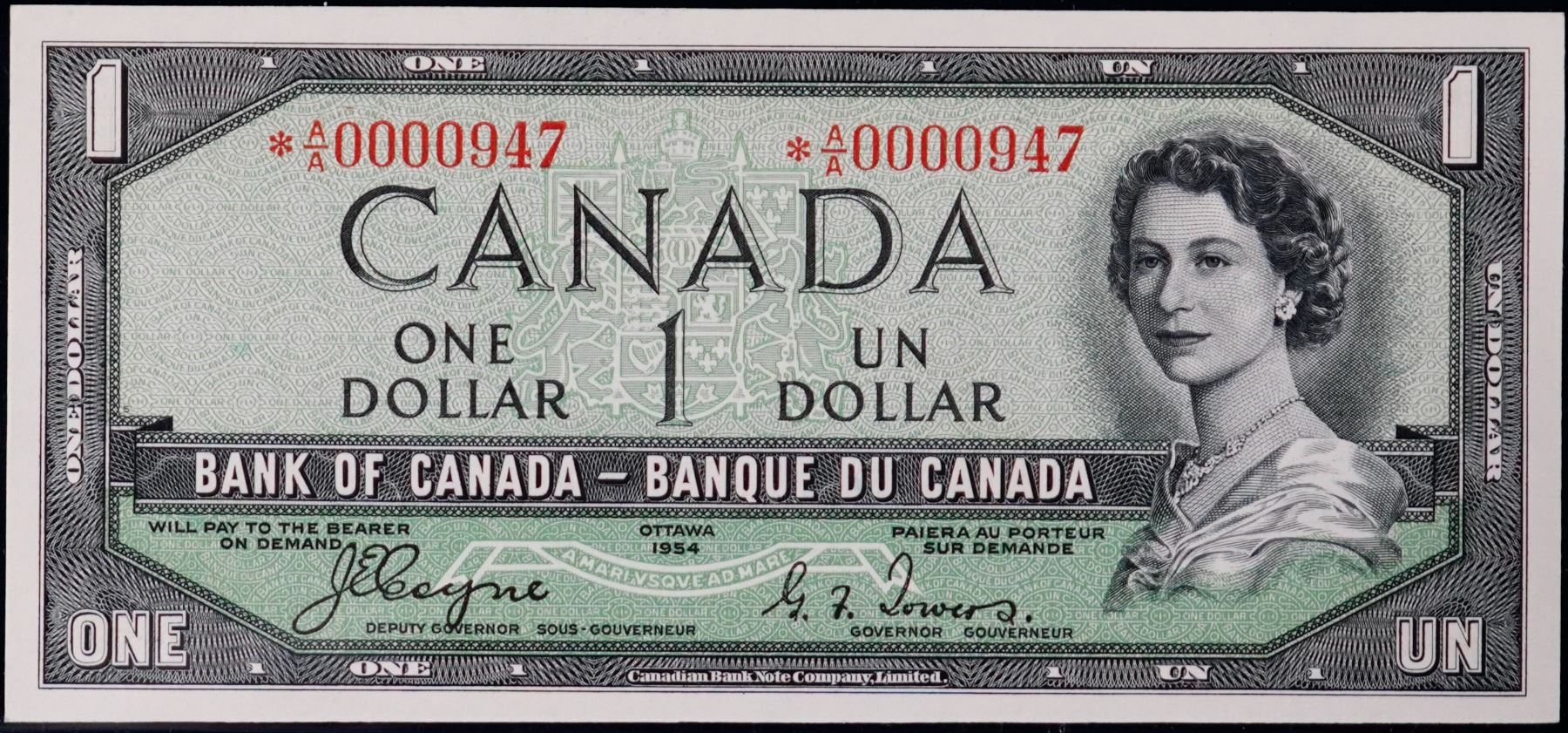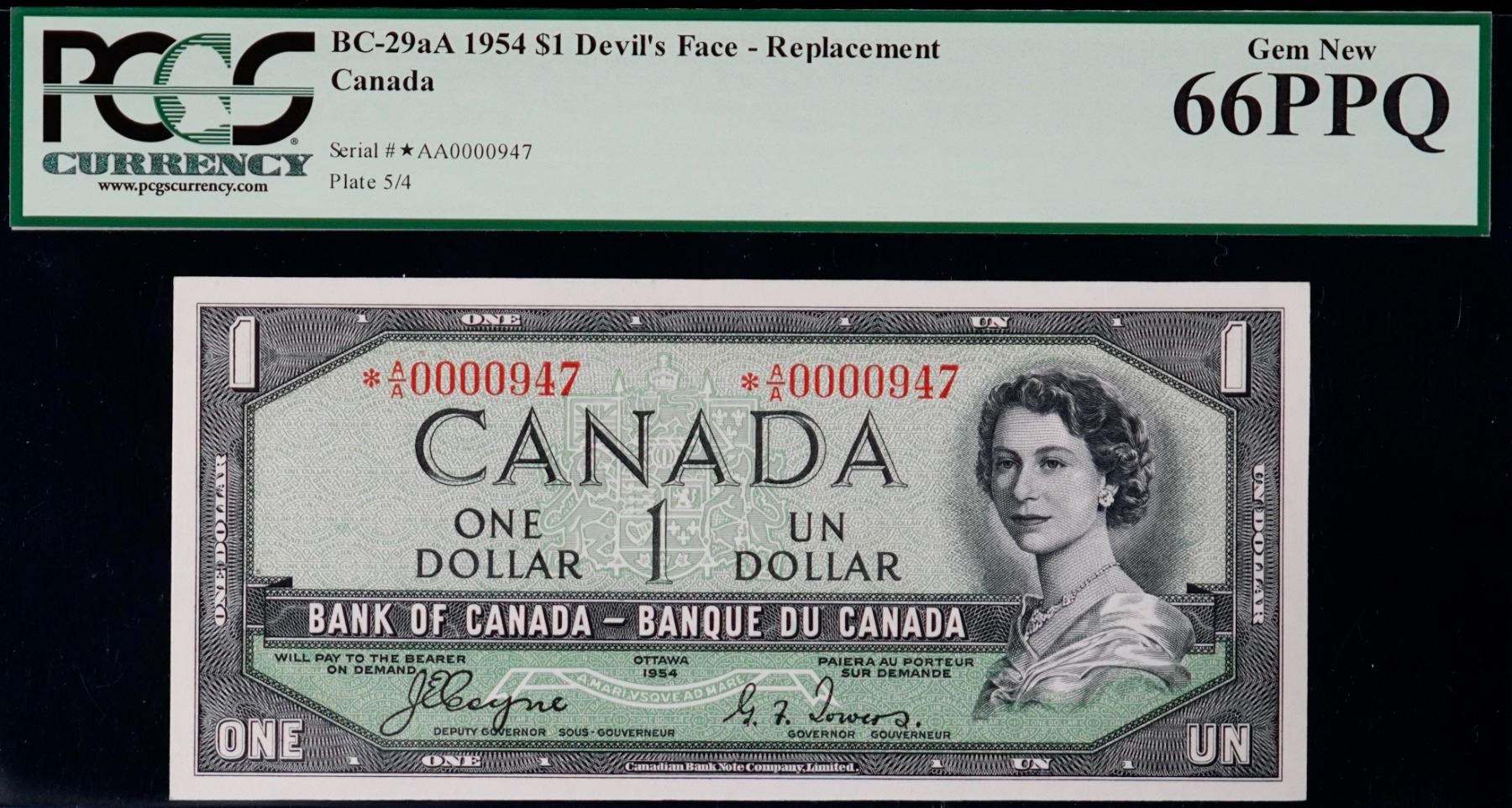 1954 $1 BC-29aA #*A/A 0000947 PCGS Splendid Gem Uncirculated-66 PPQ. This is a bright and pristine issue with nice eye appeal, nice margins and superb embossing. A rare issue.