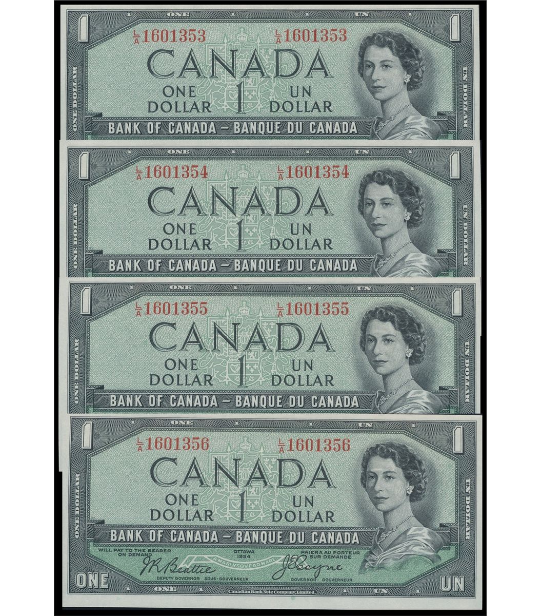 1954 $1 BC-29b #LA1601353-356, PCGS CH UNC64EPQ. Lot of 4 consecutive notes.
