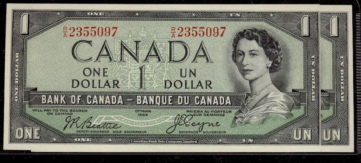 1954 $1 BC-29b Lot of 2 notes DF R/A 2355097,R/A6150797 UNC,