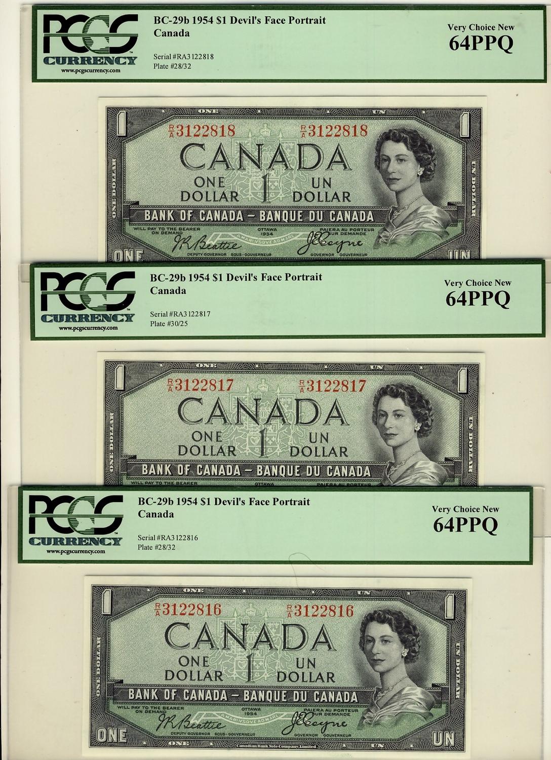1954 $1 BC-29b R/A3122816-17-18 Lot of 3 notes PCGSUNC64PPQ