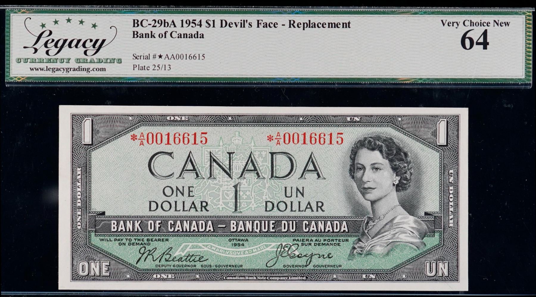 1954 $1 BC-29bA #*A/A0016615 LCG Choice Uncirculated-64. very scarce Devil's face replacement note.