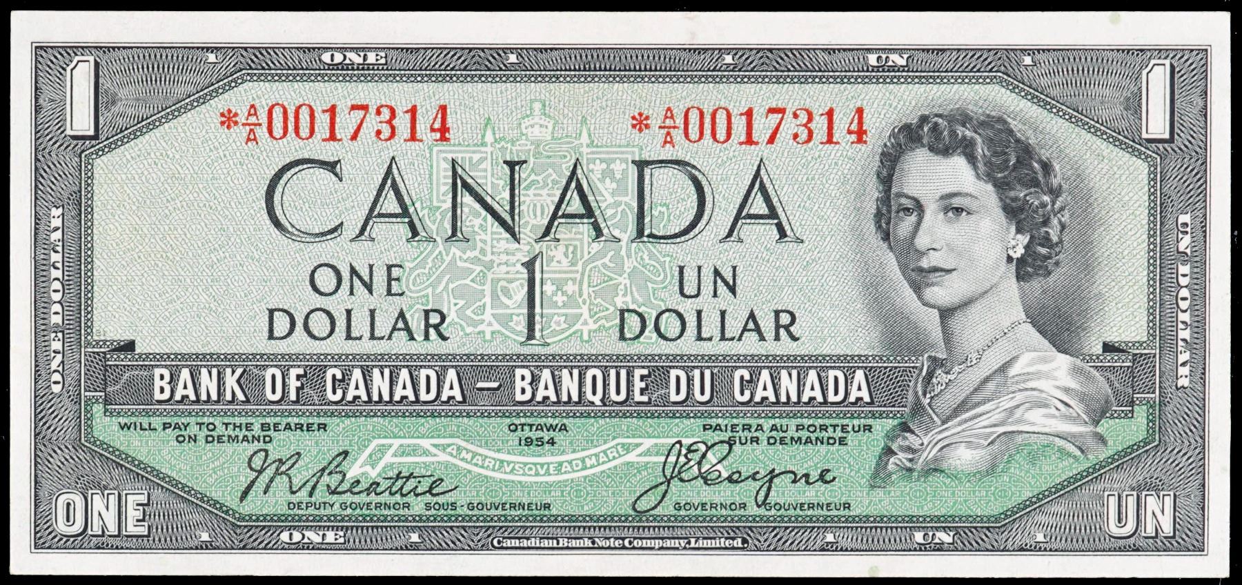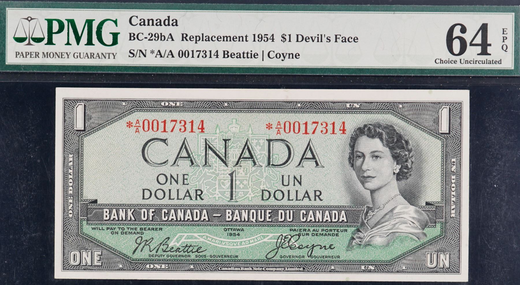 1954 $1 BC-29bA #*A/A0017314 PMG Choice Uncirculated-64EPQ. This is a pristine issue with great eye appeal, good margins and superb embossing. A similar example brought in $5377 at the 2023 Prominence X Sale.