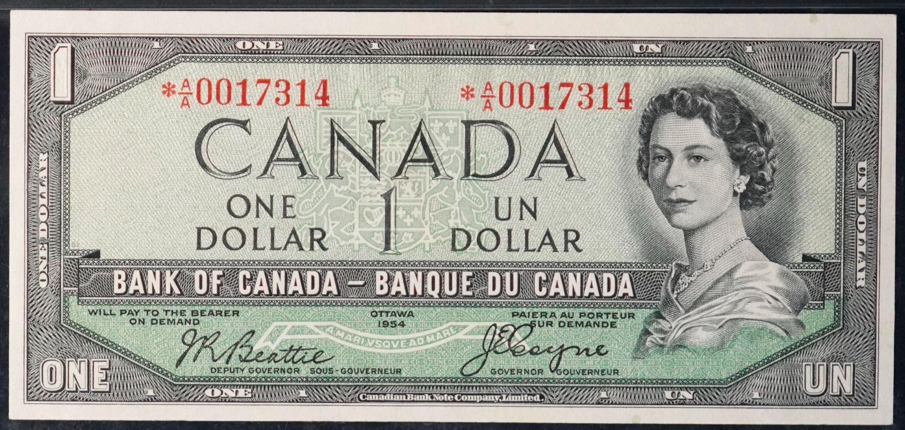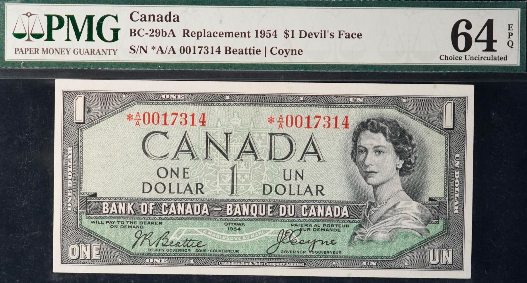 1954 $1 BC-29bA #*A/A0017314 PMG Choice Uncirculated-64EPQ Very scarce replacement/devil's face note