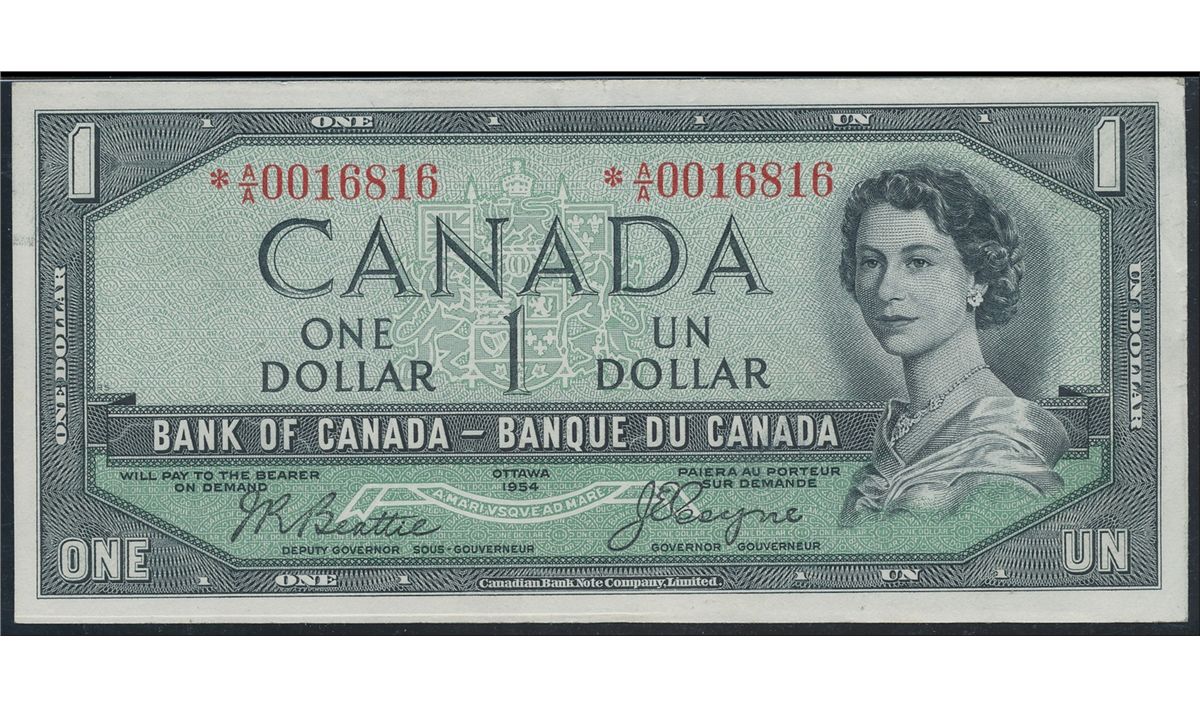 1954 $1 BC-29bA #*AA0016816. Rare DF replacement issue, PMG UNC62.