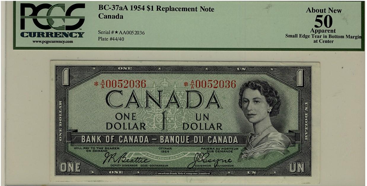 1954 $1 BC-37aA *A/A0052036 PCGS AU50 App