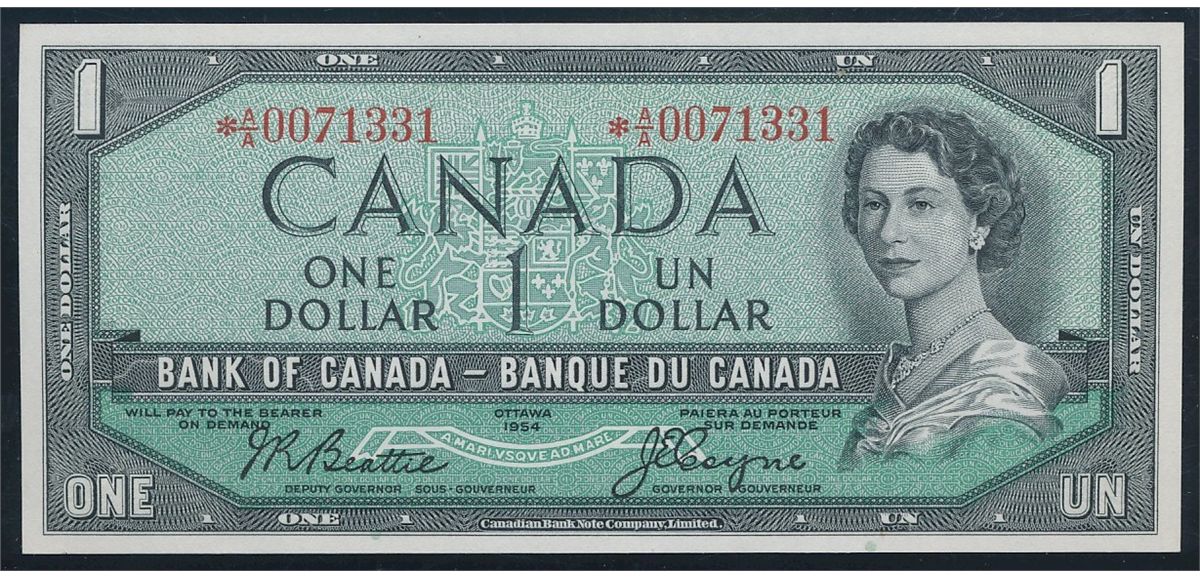 1954 $1 BC-37aA #*A/A0071331, PMG UNC67EPQ,