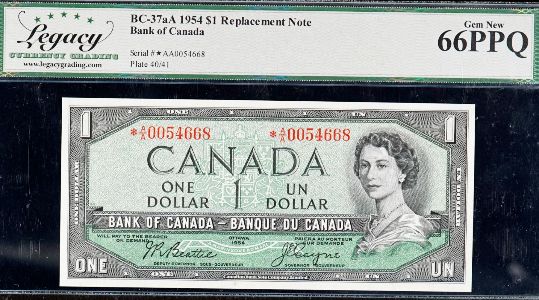 1954 $1 BC-37aA #*AA0054668, Legacy Currency Grading Superb Gem Uncirculated -66PPQ.