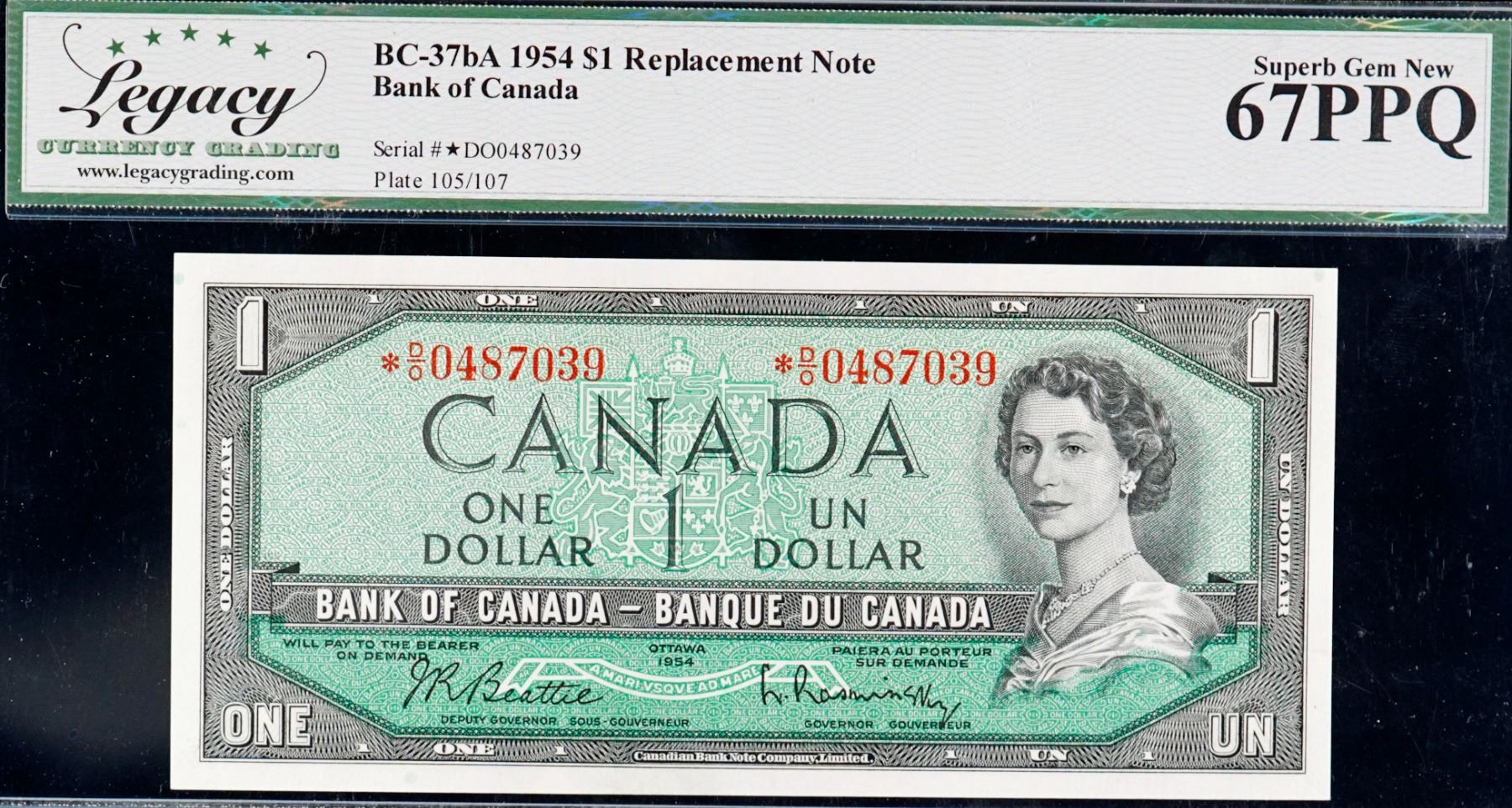 1954 $1 BC-37aA #*DO0487039-040, Legacy Currency Grading Superb Gem Uncirculated -67PPQ & Superb Gem Uncirculated -66PPQ. Lot of 2 consecutive Gem notes.