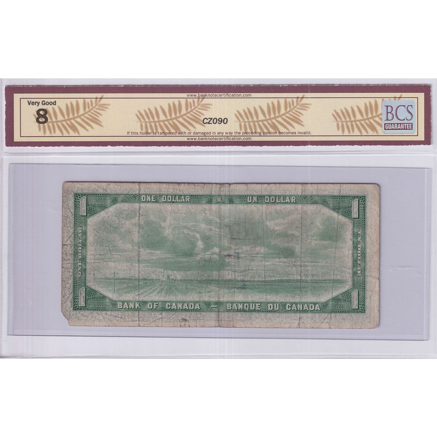 1954 $1 BC-37b, Bank of Canada, Beattie-Rasminsky Note with Neat Serial Number W/N7771677, BCS Certified VG-8 (missing piece, minor tears).