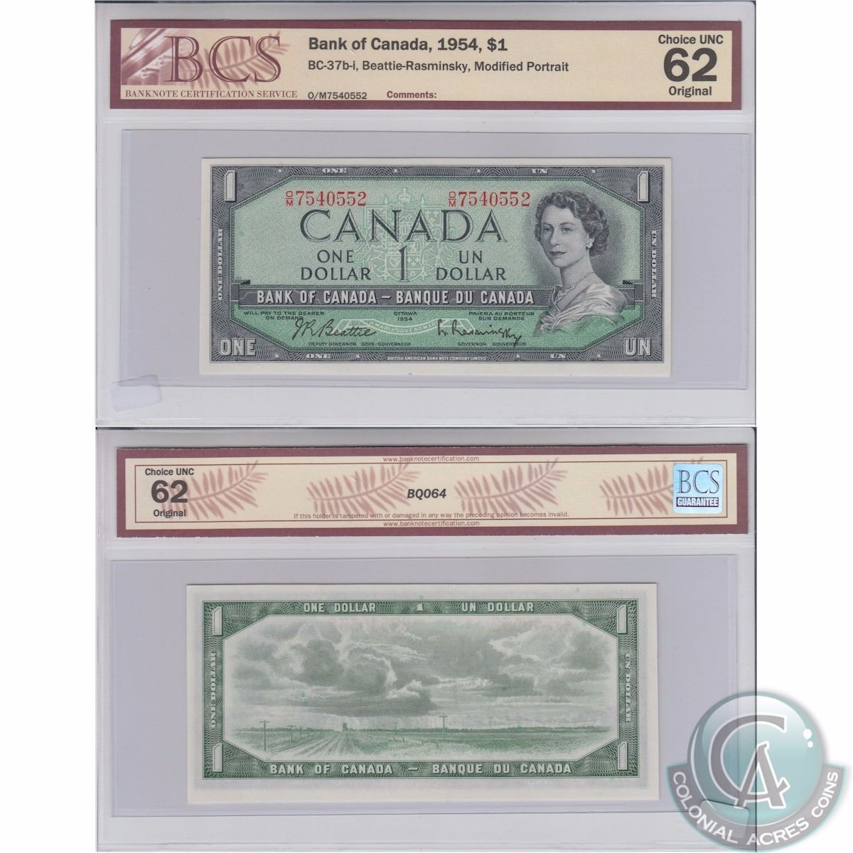 1954 $1 BC-37b-i Bank of Canada Beattie-Rasminsky Modified Portrait Note BCS Certified CUNC-62