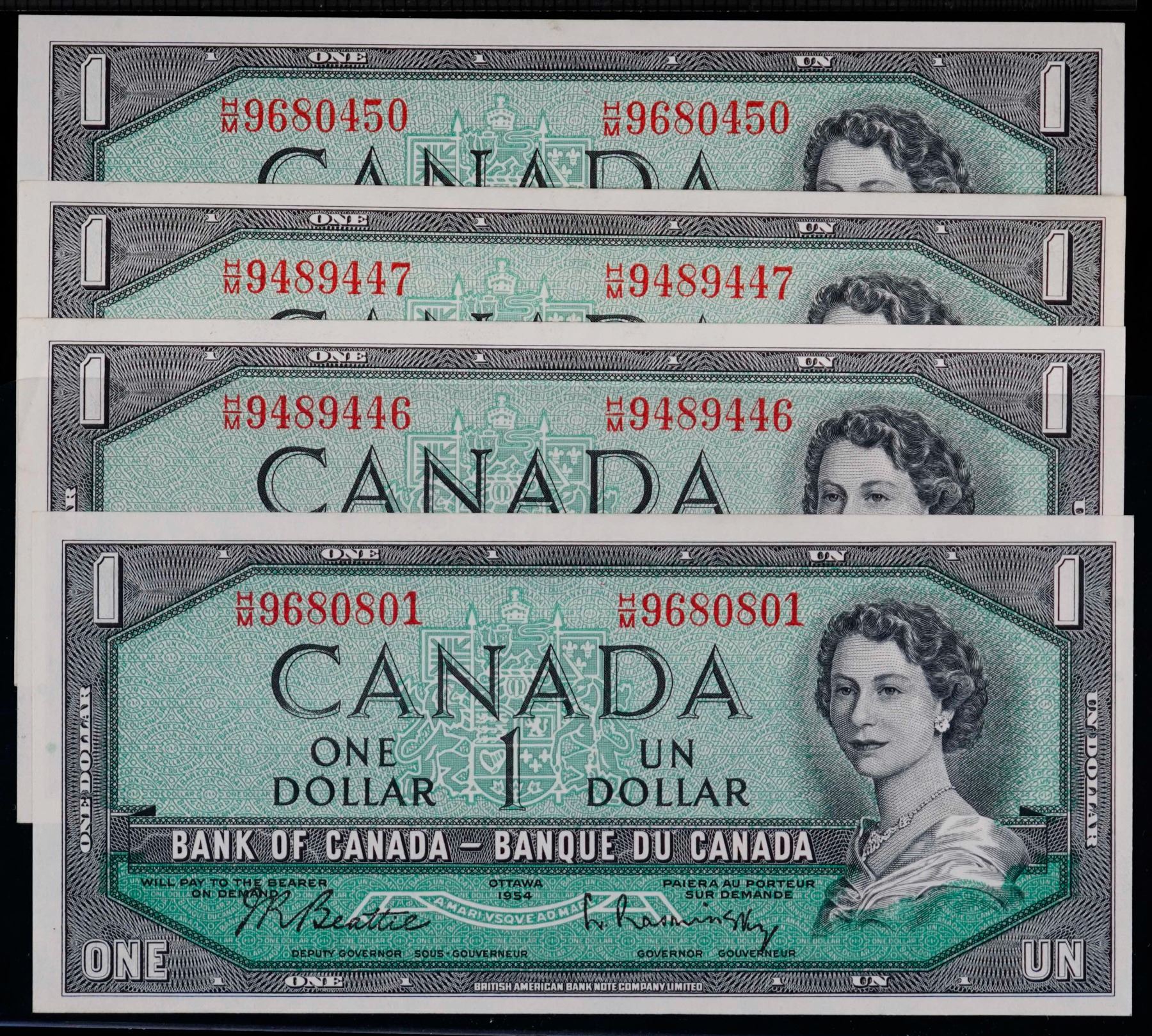 1954 $1 BC-37b-i #H/M, All 4 notes Unc to choice Unc.