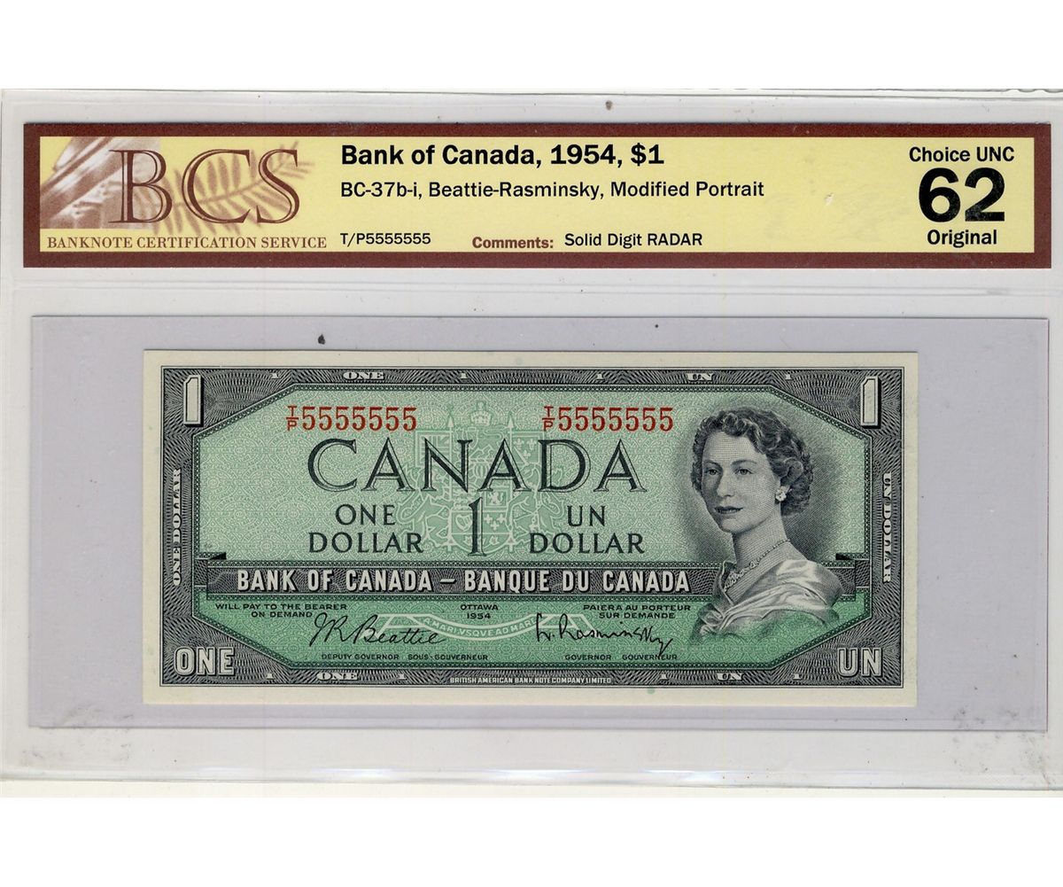 1954 $1 BC-37b-i #TP5555555 Solid BCS CH UNC62.