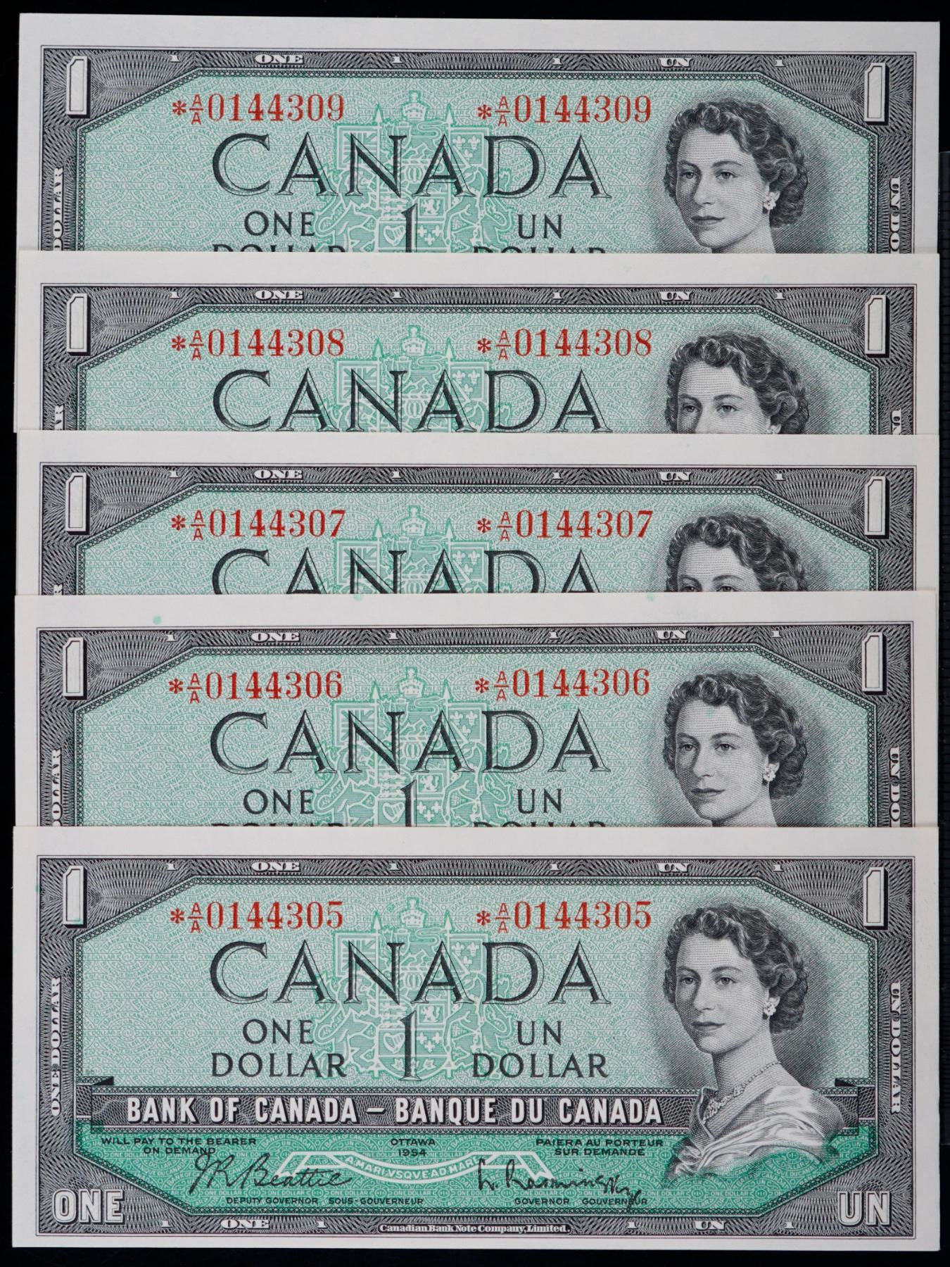 1954 $1 BC-37bA #*A/A0144305-309 Lot of 5 consecutive notes Choice Unc to Gem Unc.