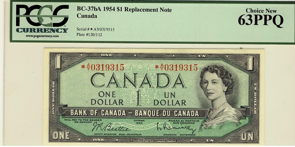 1954 $1 BC-37bA *A/Y0319315 PCGS UNC63PPQ