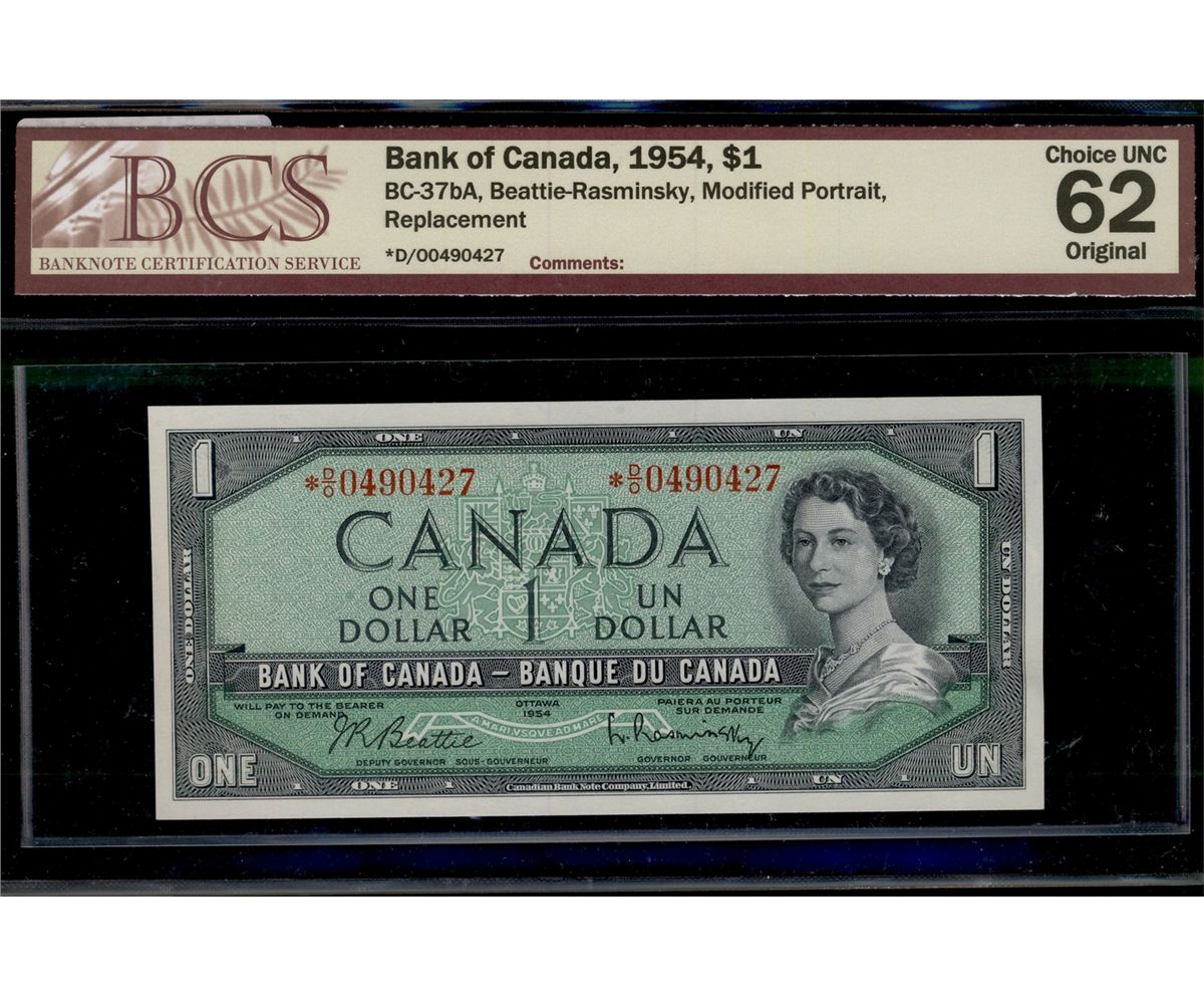 1954 $1 BC-37bA #*D/O0490427, BCS CH UNC-62, Original