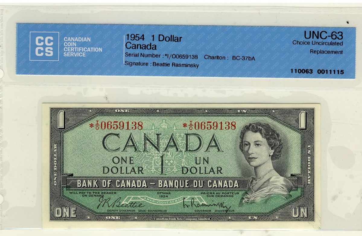1954 $1 BC-37bA *I/O0659138 CCCS UNC63. A scarce replacement.