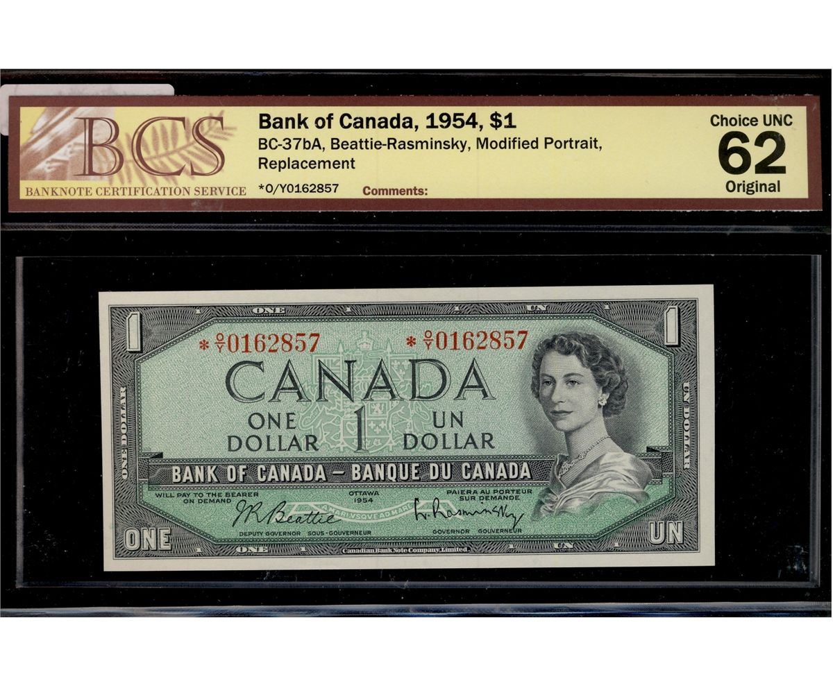 1954 $1 BC-37bA #*O/Y0162857, BCS CH UNC-62, Original